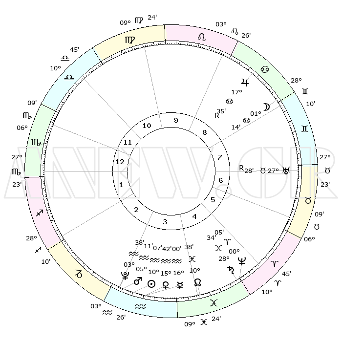 | | ΘΕΣΕΙΣ ΠΛΑΝΗΤΩΝ ΑΣΤΡΟΛΟΓΙΚΟΥ ΧΑΡΤΗ ΤΗΣ ΣΤΙΓΜΗΣ ΑΥΤΗΣ | | | | Πλανήτης | Ζώδιο | Μοίρες | Δεκαήμ. | Σε οίκο | Απόκλιση | | Ακμές των οίκων | | Ηλιος | Υδροχόος | 10°03' | Δεύτερο | 3 | 17 S 43 | | 1ος | 09°16' | Σκορπιός | | Σελήνη | Καρκίνος | 00°19' | Πρώτο | 8 | 28 N 18 | | 2ος | 08°17' | Τοξότης | | Ερμής | Υδροχόος | 15°54' | Δεύτερο | 3 | 17 S 58 | | 3ος | 11°06' | Αιγόκερως | | Αφροδίτη | Υδροχόος | 15°38' | Δεύτερο | 3 | 17 S 25 | | 4ος | 15°57' | Υδροχόος | | Αρης | Υδροχόος | 05°09' | Πρώτο | 3 | 19 S 59 | | 5ος | 18°39' | Ιχθείς | | Δίας | Καρκίνος | 17°35'R | Δεύτερο | 9 | 22 N 35 | | 6ος | 16°23' | Κριός | | Κρόνος | Ιχθείς | 28°33' | Τρίτο | 5 | 02 S 34 | | 7ος | 09°16' | Ταύρος | | Ουρανός | Ταύρος | 27°28'R | Τρίτο | 7 | 19 N 24 | | 8ος | 08°17' | Δίδυμοι | | Ποσειδώνας | Κριός | 00°05' | Πρώτο | 5 | 01 S 10 | | 9ος | 11°06' | Καρκίνος | | Πλούτωνας | Υδροχόος | 03°38' | Πρώτο | 3 | 23 S 02 | | 10ος | 15°57' | Λέων | | Β. Δεσμός | Ιχθείς | 10°38' | Δεύτερο | 4 | 07 S 35 | | 11ος | 18°39' | Παρθένος | | Ωροσκόπος | Σκορπιός | 09°16' | Πρώτο | | | 12ος | 16°23' | Ζυγός | | Μεσουράνημα | Λέων | 15°57' | Δεύτερο | | | |