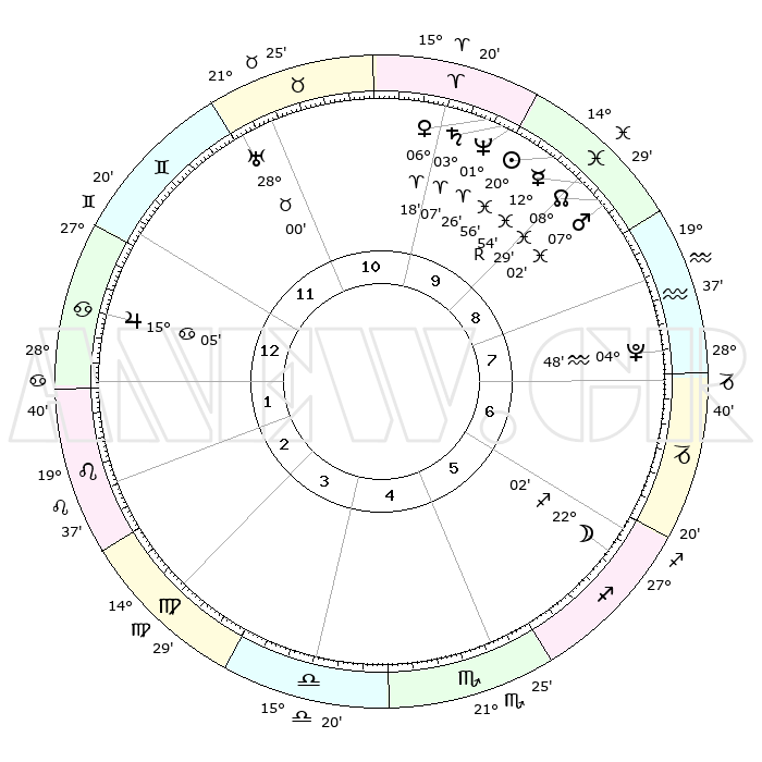 | | ΘΕΣΕΙΣ ΠΛΑΝΗΤΩΝ ΑΣΤΡΟΛΟΓΙΚΟΥ ΧΑΡΤΗ ΤΗΣ ΣΤΙΓΜΗΣ ΑΥΤΗΣ | | | | Πλανήτης | Ζώδιο | Μοίρες | Δεκαήμ. | Σε οίκο | Απόκλιση | | Ακμές των οίκων | | Ηλιος | Ιχθείς | 20°52' | Τρίτο | 9 | 03 S 37 | | 1ος | 11°08' | Καρκίνος | | Σελήνη | Τοξότης | 21°20' | Τρίτο | 6 | 28 S 17 | | 2ος | 01°33' | Λέων | | Ερμής | Ιχθείς | 12°57'R | Δεύτερο | 9 | 03 S 47 | | 3ος | 24°18' | Λέων | | Αφροδίτη | Κριός | 06°13' | Πρώτο | 10 | 01 N 25 | | 4ος | 22°27' | Παρθένος | | Αρης | Ιχθείς | 06°59' | Πρώτο | 9 | 09 S 58 | | 5ος | 27°51' | Ζυγός | | Δίας | Καρκίνος | 15°05' | Δεύτερο | 1 | 22 N 56 | | 6ος | 06°38' | Τοξότης | | Κρόνος | Κριός | 03°06' | Πρώτο | 10 | 00 S 43 | | 7ος | 11°08' | Αιγόκερως | | Ουρανός | Ταύρος | 28°00' | Τρίτο | 11 | 19 N 32 | | 8ος | 01°33' | Υδροχόος | | Ποσειδώνας | Κριός | 01°26' | Πρώτο | 10 | 00 S 38 | | 9ος | 24°18' | Υδροχόος | | Πλούτωνας | Υδροχόος | 04°48' | Πρώτο | 8 | 22 S 50 | | 10ος | 22°27' | Ιχθείς | | Β. Δεσμός | Ιχθείς | 08°30' | Πρώτο | 9 | 08 S 23 | | 11ος | 27°51' | Κριός | | Ωροσκόπος | Καρκίνος | 11°08' | Δεύτερο | | | 12ος | 06°38' | Δίδυμοι | | Μεσουράνημα | Ιχθείς | 22°27' | Τρίτο | | | |