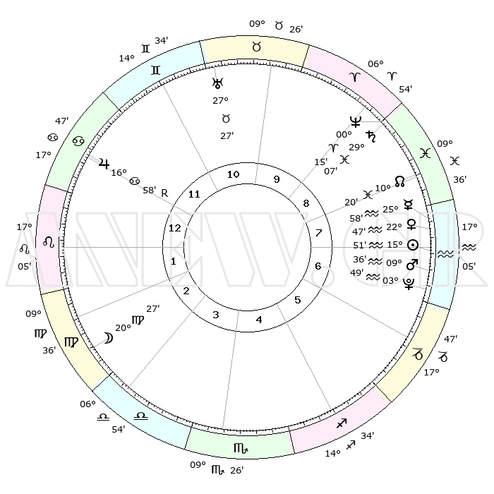 | | ΘΕΣΕΙΣ ΠΛΑΝΗΤΩΝ ΑΣΤΡΟΛΟΓΙΚΟΥ ΧΑΡΤΗ ΤΗΣ ΣΤΙΓΜΗΣ ΑΥΤΗΣ | | | | Πλανήτης | Ζώδιο | Μοίρες | Δεκαήμ. | Σε οίκο | Απόκλιση | | Ακμές των οίκων | | Ηλιος | Υδροχόος | 15°46' | Δεύτερο | 8 | 16 S 06 | | 1ος | 23°37' | Καρκίνος | | Σελήνη | Παρθένος | 19°24' | Δεύτερο | 3 | 03 N 20 | | 2ος | 14°18' | Λέων | | Ερμής | Υδροχόος | 25°50' | Τρίτο | 8 | 14 S 25 | | 3ος | 08°30' | Παρθένος | | Αφροδίτη | Υδροχόος | 22°41' | Τρίτο | 8 | 15 S 17 | | 4ος | 08°40' | Ζυγός | | Αρης | Υδροχόος | 09°33' | Πρώτο | 7 | 18 S 52 | | 5ος | 14°45' | Σκορπιός | | Δίας | Καρκίνος | 16°58'R | Δεύτερο | 12 | 22 N 40 | | 6ος | 21°31' | Τοξότης | | Κρόνος | Ιχθείς | 29°07' | Τρίτο | 9 | 02 S 20 | | 7ος | 23°37' | Αιγόκερως | | Ουρανός | Ταύρος | 27°27' | Τρίτο | 11 | 19 N 24 | | 8ος | 14°18' | Υδροχόος | | Ποσειδώνας | Κριός | 00°15' | Πρώτο | 9 | 01 S 06 | | 9ος | 08°30' | Ιχθείς | | Πλούτωνας | Υδροχόος | 03°49' | Πρώτο | 7 | 23 S 00 | | 10ος | 08°40' | Κριός | | Β. Δεσμός | Ιχθείς | 10°20' | Δεύτερο | 9 | 07 S 41 | | 11ος | 14°45' | Ταύρος | | Ωροσκόπος | Καρκίνος | 23°37' | Τρίτο | | | 12ος | 21°31' | Δίδυμοι | | Μεσουράνημα | Κριός | 08°40' | Πρώτο | | | |