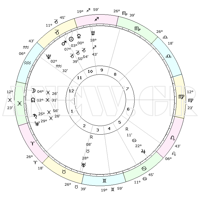 | | ΘΕΣΕΙΣ ΠΛΑΝΗΤΩΝ ΑΣΤΡΟΛΟΓΙΚΟΥ ΧΑΡΤΗ ΤΗΣ ΣΤΙΓΜΗΣ ΑΥΤΗΣ | | | | Πλανήτης | Ζώδιο | Μοίρες | Δεκαήμ. | Σε οίκο | Απόκλιση | | Ακμές των οίκων | | Ηλιος | Αιγόκερως | 03°45' | Πρώτο | 11 | 23 S 23 | | 1ος | 00°32' | Υδροχόος | | Σελήνη | Ιχθείς | 03°22' | Πρώτο | 1 | 10 S 55 | | 2ος | 14°43' | Ιχθείς | | Ερμής | Τοξότης | 18°36' | Δεύτερο | 11 | 22 S 44 | | 3ος | 23°05' | Κριός | | Αφροδίτη | Αιγόκερως | 00°48' | Πρώτο | 11 | 23 S 41 | | 4ος | 21°27' | Ταύρος | | Αρης | Αιγόκερως | 07°35' | Πρώτο | 12 | 24 S 04 | | 5ος | 14°10' | Δίδυμοι | | Δίας | Καρκίνος | 22°12'R | Τρίτο | 6 | 21 N 49 | | 6ος | 05°37' | Καρκίνος | | Κρόνος | Ιχθείς | 25°56' | Τρίτο | 2 | 03 S 43 | | 7ος | 00°32' | Λέων | | Ουρανός | Ταύρος | 28°09'R | Τρίτο | 4 | 19 N 33 | | 8ος | 14°43' | Παρθένος | | Ποσειδώνας | Ιχθείς | 29°26' | Τρίτο | 2 | 01 S 27 | | 9ος | 23°05' | Ζυγός | | Πλούτωνας | Υδροχόος | 02°32' | Πρώτο | 1 | 23 S 16 | | 10ος | 21°27' | Σκορπιός | | Β. Δεσμός | Ιχθείς | 12°31' | Δεύτερο | 1 | 06 S 52 | | 11ος | 14°10' | Τοξότης | | Ωροσκόπος | Υδροχόος | 00°32' | Πρώτο | | | 12ος | 05°37' | Αιγόκερως | | Μεσουράνημα | Σκορπιός | 21°27' | Τρίτο | | | |