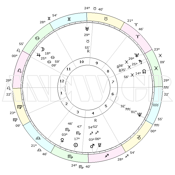 | | ΘΕΣΕΙΣ ΠΛΑΝΗΤΩΝ ΑΣΤΡΟΛΟΓΙΚΟΥ ΧΑΡΤΗ ΤΗΣ ΣΤΙΓΜΗΣ ΑΥΤΗΣ | | | | Πλανήτης | Ζώδιο | Μοίρες | Δεκαήμ. | Σε οίκο | Απόκλιση | | Ακμές των οίκων | | Ηλιος | Σκορπιός | 17°42' | Δεύτερο | 4 | 17 S 06 | | 1ος | 03°60' | Λέων | | Σελήνη | Καρκίνος | 17°45' | Δεύτερο | 12 | 26 N 33 | | 2ος | 25°19' | Λέων | | Ερμής | Τοξότης | 06°52' | Πρώτο | 5 | 23 S 46 | | 3ος | 20°55' | Παρθένος | | Αφροδίτη | Σκορπιός | 03°39' | Πρώτο | 4 | 11 S 29 | | 4ος | 22°25' | Ζυγός | | Αρης | Τοξότης | 03°50' | Πρώτο | 5 | 21 S 23 | | 5ος | 28°20' | Σκορπιός | | Δίας | Καρκίνος | 25°09' | Τρίτο | 12 | 21 N 12 | | 6ος | 03°23' | Αιγόκερως | | Κρόνος | Ιχθείς | 25°35'R | Τρίτο | 9 | 04 S 00 | | 7ος | 03°60' | Υδροχόος | | Ουρανός | Ταύρος | 29°55'R | Τρίτο | 11 | 19 N 56 | | 8ος | 25°19' | Υδροχόος | | Ποσειδώνας | Ιχθείς | 29°38'R | Τρίτο | 9 | 01 S 24 | | 9ος | 20°55' | Ιχθείς | | Πλούτωνας | Υδροχόος | 01°32' | Πρώτο | 6 | 23 S 29 | | 10ος | 22°25' | Κριός | | Β. Δεσμός | Ιχθείς | 14°56' | Δεύτερο | 8 | 05 S 56 | | 11ος | 28°20' | Ταύρος | | Ωροσκόπος | Λέων | 03°60' | Πρώτο | | | 12ος | 03°23' | Καρκίνος | | Μεσουράνημα | Κριός | 22°25' | Τρίτο | | | |