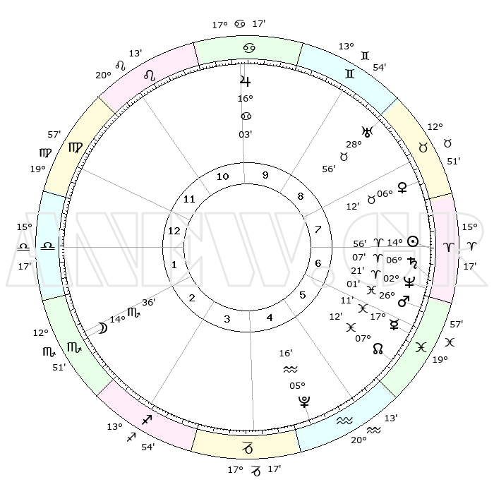 | | ΘΕΣΕΙΣ ΠΛΑΝΗΤΩΝ ΑΣΤΡΟΛΟΓΙΚΟΥ ΧΑΡΤΗ ΤΗΣ ΣΤΙΓΜΗΣ ΑΥΤΗΣ | | | | Πλανήτης | Ζώδιο | Μοίρες | Δεκαήμ. | Σε οίκο | Απόκλιση | | Ακμές των οίκων | | Ηλιος | Κριός | 14°50' | Δεύτερο | 8 | 05 N 51 | | 1ος | 16°26' | Παρθένος | | Σελήνη | Σκορπιός | 13°24' | Δεύτερο | 3 | 20 S 19 | | 2ος | 11°55' | Ζυγός | | Ερμής | Ιχθείς | 17°05' | Δεύτερο | 7 | 06 S 46 | | 3ος | 11°45' | Σκορπιός | | Αφροδίτη | Ταύρος | 06°05' | Πρώτο | 8 | 13 N 16 | | 4ος | 14°41' | Τοξότης | | Αρης | Ιχθείς | 25°57' | Τρίτο | 7 | 02 S 33 | | 5ος | 17°59' | Αιγόκερως | | Δίας | Καρκίνος | 16°02' | Δεύτερο | 10 | 22 N 50 | | 6ος | 18°58' | Υδροχόος | | Κρόνος | Κριός | 06°07' | Πρώτο | 7 | 00 N 28 | | 7ος | 16°26' | Ιχθείς | | Ουρανός | Ταύρος | 28°55' | Τρίτο | 9 | 19 N 45 | | 8ος | 11°55' | Κριός | | Ποσειδώνας | Κριός | 02°21' | Πρώτο | 7 | 00 S 16 | | 9ος | 11°45' | Ταύρος | | Πλούτωνας | Υδροχόος | 05°16' | Πρώτο | 5 | 22 S 47 | | 10ος | 14°41' | Δίδυμοι | | Β. Δεσμός | Ιχθείς | 07°13' | Πρώτο | 6 | 08 S 52 | | 11ος | 17°59' | Καρκίνος | | Ωροσκόπος | Παρθένος | 16°26' | Δεύτερο | | | 12ος | 18°58' | Λέων | | Μεσουράνημα | Δίδυμοι | 14°41' | Δεύτερο | | | |