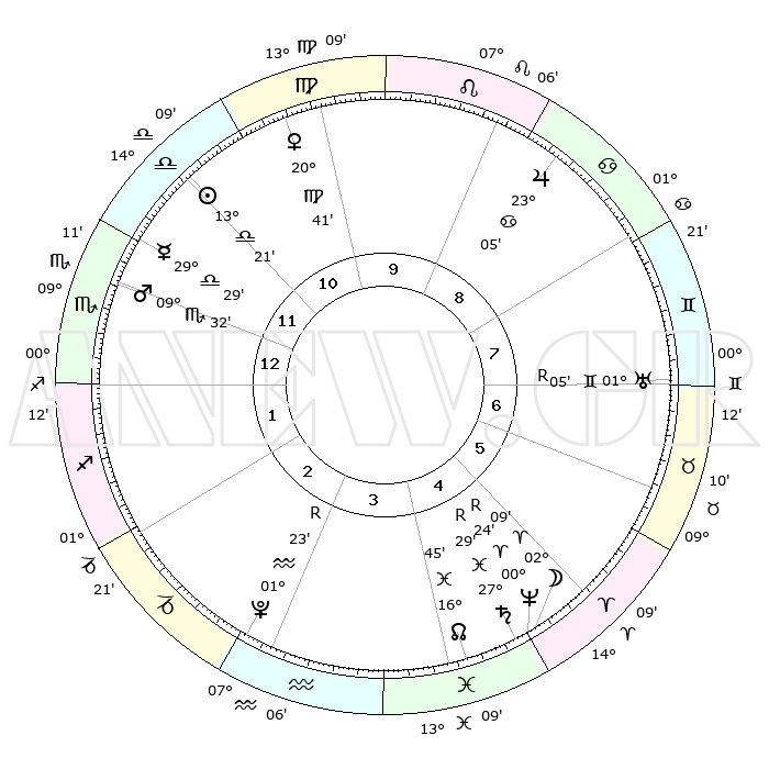 | ΘΕΣΕΙΣ ΠΛΑΝΗΤΩΝ ΑΣΤΡΟΛΟΓΙΚΟΥ ΧΑΡΤΗ ΤΗΣ ΣΤΙΓΜΗΣ ΑΥΤΗΣ | | Πλανήτης | Ζώδιο | Μοίρες | Δεκαήμ. | Σε οίκο | Απόκλιση | | Ακμές των οίκων | Ηλιος | Ζυγός | 13°15' | Δεύτερο | 12 | 05 S 14 | | 1ος | 05°37' | Σκορπιός | Σελήνη | Κριός | 00°55' | Πρώτο | 5 | 01 N 25 | | 2ος | 04°23' | Τοξότης | Ερμής | Ζυγός | 29°22' | Τρίτο | 12 | 11 S 56 | | 3ος | 06°50' | Αιγόκερως | Αφροδίτη | Παρθένος | 20°34' | Τρίτο | 11 | 05 N 01 | | 4ος | 11°25' | Υδροχόος | Αρης | Σκορπιός | 09°28' | Πρώτο | 1 | 14 S 46 | | 5ος | 14°14' | Ιχθείς | Δίας | Καρκίνος | 23°05' | Τρίτο | 9 | 21 N 29 | | 6ος | 12°22' | Κριός | Κρόνος | Ιχθείς | 27°30'R | Τρίτο | 5 | 03 S 18 | | 7ος | 05°37' | Ταύρος | Ουρανός | Δίδυμοι | 01°05'R | Πρώτο | 7 | 20 N 10 | | 8ος | 04°23' | Δίδυμοι | Ποσειδώνας | Κριός | 00°24'R | Πρώτο | 5 | 01 S 06 | | 9ος | 06°50' | Καρκίνος | Πλούτωνας | Υδροχόος | 01°23'R | Πρώτο | 3 | 23 S 32 | | 10ος | 11°25' | Λέων | Β. Δεσμός | Ιχθείς | 16°46' | Δεύτερο | 5 | 05 S 14 | | 11ος | 14°14' | Παρθένος | Ωροσκόπος | Σκορπιός | 05°37' | Πρώτο | | | 12ος | 12°22' | Ζυγός | Μεσουράνημα | Λέων | 11°25' | Δεύτερο | | | |