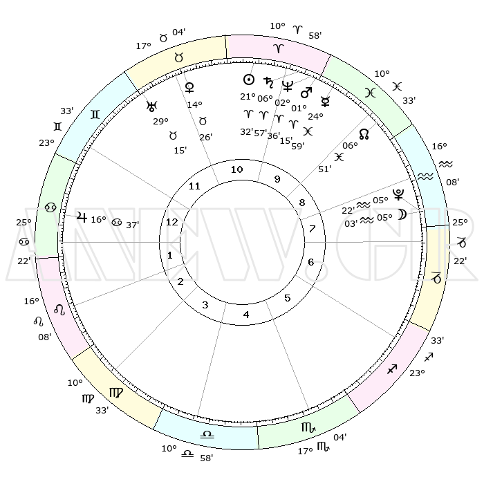 | | ΘΕΣΕΙΣ ΠΛΑΝΗΤΩΝ ΑΣΤΡΟΛΟΓΙΚΟΥ ΧΑΡΤΗ ΤΗΣ ΣΤΙΓΜΗΣ ΑΥΤΗΣ | | | | Πλανήτης | Ζώδιο | Μοίρες | Δεκαήμ. | Σε οίκο | Απόκλιση | | Ακμές των οίκων | | Ηλιος | Κριός | 21°27' | Τρίτο | 11 | 08 N 22 | | 1ος | 03°38' | Καρκίνος | | Σελήνη | Υδροχόος | 04°10' | Πρώτο | 8 | 22 S 01 | | 2ος | 24°14' | Καρκίνος | | Ερμής | Ιχθείς | 24°53' | Τρίτο | 10 | 04 S 15 | | 3ος | 16°18' | Λέων | | Αφροδίτη | Ταύρος | 14°21' | Δεύτερο | 11 | 16 N 09 | | 4ος | 13°12' | Παρθένος | | Αρης | Κριός | 01°12' | Πρώτο | 10 | 00 S 27 | | 5ος | 17°41' | Ζυγός | | Δίας | Καρκίνος | 16°36' | Δεύτερο | 1 | 22 N 47 | | 6ος | 27°23' | Σκορπιός | | Κρόνος | Κριός | 06°56' | Πρώτο | 10 | 00 N 47 | | 7ος | 03°38' | Αιγόκερως | | Ουρανός | Ταύρος | 29°15' | Τρίτο | 12 | 19 N 49 | | 8ος | 24°14' | Αιγόκερως | | Ποσειδώνας | Κριός | 02°36' | Πρώτο | 10 | 00 S 10 | | 9ος | 16°18' | Υδροχόος | | Πλούτωνας | Υδροχόος | 05°22' | Πρώτο | 8 | 22 S 47 | | 10ος | 13°12' | Ιχθείς | | Β. Δεσμός | Ιχθείς | 06°51' | Πρώτο | 9 | 09 S 00 | | 11ος | 17°41' | Κριός | | Ωροσκόπος | Καρκίνος | 03°38' | Πρώτο | | | 12ος | 27°23' | Ταύρος | | Μεσουράνημα | Ιχθείς | 13°12' | Δεύτερο | | | |