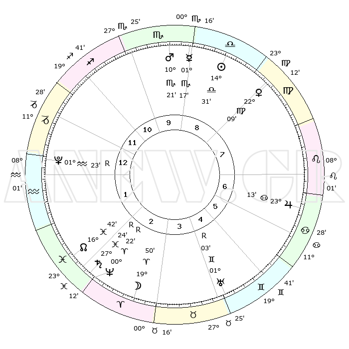 | ΘΕΣΕΙΣ ΠΛΑΝΗΤΩΝ ΑΣΤΡΟΛΟΓΙΚΟΥ ΧΑΡΤΗ ΤΗΣ ΣΤΙΓΜΗΣ ΑΥΤΗΣ | | Πλανήτης | Ζώδιο | Μοίρες | Δεκαήμ. | Σε οίκο | Απόκλιση | | Ακμές των οίκων | Ηλιος | Ζυγός | 14°25' | Δεύτερο | 9 | 05 S 41 | | 1ος | 29°36' | Τοξότης | Σελήνη | Κριός | 18°21' | Δεύτερο | 3 | 09 N 37 | | 2ος | 06°38' | Υδροχόος | Ερμής | Σκορπιός | 01°08' | Πρώτο | 10 | 12 S 41 | | 3ος | 16°37' | Ιχθείς | Αφροδίτη | Παρθένος | 22°02' | Τρίτο | 9 | 04 N 28 | | 4ος | 20°37' | Κριός | Αρης | Σκορπιός | 10°17' | Δεύτερο | 10 | 15 S 02 | | 5ος | 16°60' | Ταύρος | Δίας | Καρκίνος | 23°12' | Τρίτο | 7 | 21 N 28 | | 6ος | 08°49' | Δίδυμοι | Κρόνος | Ιχθείς | 27°25'R | Τρίτο | 3 | 03 S 20 | | 7ος | 29°36' | Δίδυμοι | Ουρανός | Δίδυμοι | 01°04'R | Πρώτο | 5 | 20 N 10 | | 8ος | 06°38' | Λέων | Ποσειδώνας | Κριός | 00°22'R | Πρώτο | 3 | 01 S 07 | | 9ος | 16°37' | Παρθένος | Πλούτωνας | Υδροχόος | 01°23'R | Πρώτο | 1 | 23 S 32 | | 10ος | 20°37' | Ζυγός | Β. Δεσμός | Ιχθείς | 16°42' | Δεύτερο | 3 | 05 S 15 | | 11ος | 16°60' | Σκορπιός | Ωροσκόπος | Τοξότης | 29°36' | Τρίτο | | | 12ος | 08°49' | Τοξότης | Μεσουράνημα | Ζυγός | 20°37' | Τρίτο | | | |