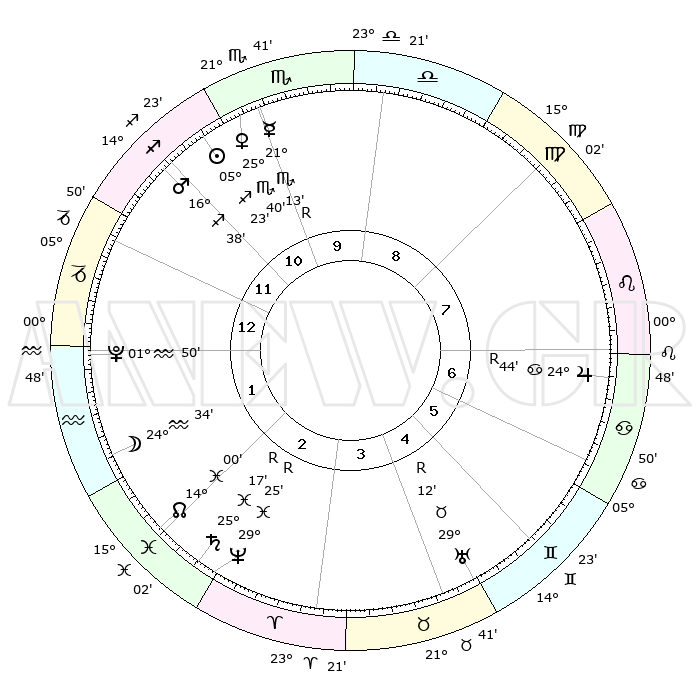 | | ΘΕΣΕΙΣ ΠΛΑΝΗΤΩΝ ΑΣΤΡΟΛΟΓΙΚΟΥ ΧΑΡΤΗ ΤΗΣ ΣΤΙΓΜΗΣ ΑΥΤΗΣ | | | | Πλανήτης | Ζώδιο | Μοίρες | Δεκαήμ. | Σε οίκο | Απόκλιση | | Ακμές των οίκων | | Ηλιος | Τοξότης | 05°21' | Πρώτο | 11 | 21 S 11 | | 1ος | 16°19' | Αιγόκερως | | Σελήνη | Υδροχόος | 24°06' | Τρίτο | 1 | 15 S 08 | | 2ος | 27°35' | Υδροχόος | | Ερμής | Σκορπιός | 21°14'R | Τρίτο | 10 | 15 S 50 | | 3ος | 07°37' | Κριός | | Αφροδίτη | Σκορπιός | 25°37' | Τρίτο | 10 | 18 S 21 | | 4ος | 08°36' | Ταύρος | | Αρης | Τοξότης | 16°36' | Δεύτερο | 11 | 23 S 23 | | 5ος | 02°39' | Δίδυμοι | | Δίας | Καρκίνος | 24°45'R | Τρίτο | 7 | 21 N 19 | | 6ος | 23°52' | Δίδυμοι | | Κρόνος | Ιχθείς | 25°17'R | Τρίτο | 2 | 04 S 04 | | 7ος | 16°19' | Καρκίνος | | Ουρανός | Ταύρος | 29°12'R | Τρίτο | 4 | 19 N 46 | | 8ος | 27°35' | Λέων | | Ποσειδώνας | Ιχθείς | 29°25'R | Τρίτο | 2 | 01 S 28 | | 9ος | 07°37' | Ζυγός | | Πλούτωνας | Υδροχόος | 01°50' | Πρώτο | 1 | 23 S 25 | | 10ος | 08°36' | Σκορπιός | | Β. Δεσμός | Ιχθείς | 14°00' | Δεύτερο | 2 | 06 S 17 | | 11ος | 02°39' | Τοξότης | | Ωροσκόπος | Αιγόκερως | 16°19' | Δεύτερο | | | 12ος | 23°52' | Τοξότης | | Μεσουράνημα | Σκορπιός | 08°36' | Πρώτο | | | |