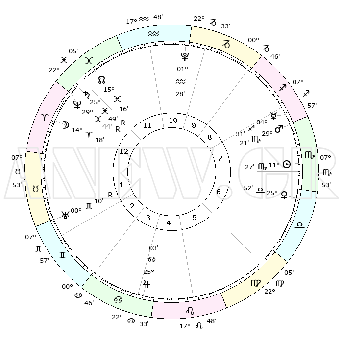 | | ΘΕΣΕΙΣ ΠΛΑΝΗΤΩΝ ΑΣΤΡΟΛΟΓΙΚΟΥ ΧΑΡΤΗ ΤΗΣ ΣΤΙΓΜΗΣ ΑΥΤΗΣ | | | | Πλανήτης | Ζώδιο | Μοίρες | Δεκαήμ. | Σε οίκο | Απόκλιση | | Ακμές των οίκων | | Ηλιος | Σκορπιός | 11°10' | Δεύτερο | 11 | 15 S 10 | | 1ος | 20°55' | Τοξότης | | Σελήνη | Κριός | 10°00' | Δεύτερο | 3 | 05 N 48 | | 2ος | 25°53' | Αιγόκερως | | Ερμής | Τοξότης | 04°18' | Πρώτο | 12 | 23 S 50 | | 3ος | 04°57' | Ιχθείς | | Αφροδίτη | Ζυγός | 25°30' | Τρίτο | 10 | 08 S 31 | | 4ος | 10°08' | Κριός | | Αρης | Σκορπιός | 29°09' | Τρίτο | 11 | 20 S 22 | | 5ος | 07°56' | Ταύρος | | Δίας | Καρκίνος | 25°02' | Τρίτο | 7 | 21 N 12 | | 6ος | 00°28' | Δίδυμοι | | Κρόνος | Ιχθείς | 25°49'R | Τρίτο | 3 | 03 S 55 | | 7ος | 20°55' | Δίδυμοι | | Ουρανός | Δίδυμοι | 00°11'R | Πρώτο | 5 | 19 N 59 | | 8ος | 25°53' | Καρκίνος | | Ποσειδώνας | Ιχθείς | 29°45'R | Τρίτο | 3 | 01 S 21 | | 9ος | 04°57' | Παρθένος | | Πλούτωνας | Υδροχόος | 01°28' | Πρώτο | 2 | 23 S 30 | | 10ος | 10°08' | Ζυγός | | Β. Δεσμός | Ιχθείς | 15°16' | Δεύτερο | 3 | 05 S 48 | | 11ος | 07°56' | Σκορπιός | | Ωροσκόπος | Τοξότης | 20°55' | Τρίτο | | | 12ος | 00°28' | Τοξότης | | Μεσουράνημα | Ζυγός | 10°08' | Δεύτερο | | | |