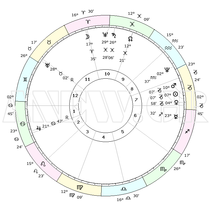 | | ΘΕΣΕΙΣ ΠΛΑΝΗΤΩΝ ΑΣΤΡΟΛΟΓΙΚΟΥ ΧΑΡΤΗ ΤΗΣ ΣΤΙΓΜΗΣ ΑΥΤΗΣ | | | | Πλανήτης | Ζώδιο | Μοίρες | Δεκαήμ. | Σε οίκο | Απόκλιση | | Ακμές των οίκων | | Ηλιος | Αιγόκερως | 07°03' | Πρώτο | 8 | 23 S 15 | | 1ος | 08°01' | Δίδυμοι | | Σελήνη | Κριός | 16°37' | Δεύτερο | 11 | 09 N 15 | | 2ος | 01°20' | Καρκίνος | | Ερμής | Τοξότης | 23°26' | Τρίτο | 7 | 23 S 27 | | 3ος | 22°34' | Καρκίνος | | Αφροδίτη | Αιγόκερως | 04°52' | Πρώτο | 8 | 23 S 43 | | 4ος | 16°01' | Λέων | | Αρης | Αιγόκερως | 10°03' | Δεύτερο | 8 | 23 S 55 | | 5ος | 15°55' | Παρθένος | | Δίας | Καρκίνος | 21°48'R | Τρίτο | 2 | 21 N 54 | | 6ος | 25°27' | Ζυγός | | Κρόνος | Ιχθείς | 26°06' | Τρίτο | 11 | 03 S 38 | | 7ος | 08°01' | Τοξότης | | Ουρανός | Ταύρος | 28°03'R | Τρίτο | 12 | 19 N 31 | | 8ος | 01°20' | Αιγόκερως | | Ποσειδώνας | Ιχθείς | 29°28' | Τρίτο | 11 | 01 S 26 | | 9ος | 22°34' | Αιγόκερως | | Πλούτωνας | Υδροχόος | 02°37' | Πρώτο | 9 | 23 S 14 | | 10ος | 16°01' | Υδροχόος | | Β. Δεσμός | Ιχθείς | 12°21' | Δεύτερο | 10 | 06 S 55 | | 11ος | 15°55' | Ιχθείς | | Ωροσκόπος | Δίδυμοι | 08°01' | Πρώτο | | | 12ος | 25°27' | Κριός | | Μεσουράνημα | Υδροχόος | 16°01' | Δεύτερο | | | |
