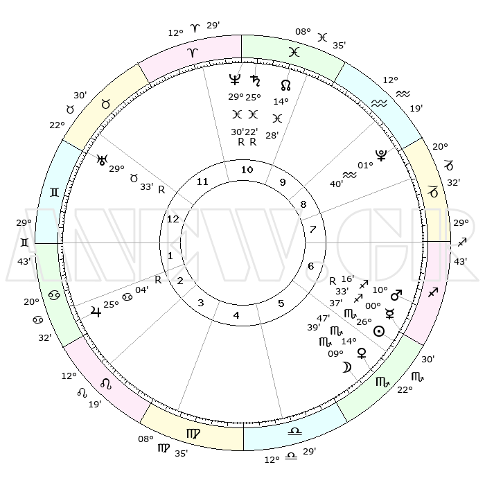 | | ΘΕΣΕΙΣ ΠΛΑΝΗΤΩΝ ΑΣΤΡΟΛΟΓΙΚΟΥ ΧΑΡΤΗ ΤΗΣ ΣΤΙΓΜΗΣ ΑΥΤΗΣ | | | | Πλανήτης | Ζώδιο | Μοίρες | Δεκαήμ. | Σε οίκο | Απόκλιση | | Ακμές των οίκων | | Ηλιος | Σκορπιός | 26°33' | Τρίτο | 6 | 19 S 23 | | 1ος | 06°33' | Δίδυμοι | | Σελήνη | Σκορπιός | 08°53' | Πρώτο | 6 | 18 S 16 | | 2ος | 00°08' | Καρκίνος | | Ερμής | Τοξότης | 00°38'R | Πρώτο | 6 | 20 S 20 | | 3ος | 21°23' | Καρκίνος | | Αφροδίτη | Σκορπιός | 14°42' | Δεύτερο | 6 | 15 S 11 | | 4ος | 14°41' | Λέων | | Αρης | Τοξότης | 10°13' | Δεύτερο | 7 | 22 S 32 | | 5ος | 14°19' | Παρθένος | | Δίας | Καρκίνος | 25°04'R | Τρίτο | 3 | 21 N 14 | | 6ος | 23°41' | Ζυγός | | Κρόνος | Ιχθείς | 25°22'R | Τρίτο | 11 | 04 S 03 | | 7ος | 06°33' | Τοξότης | | Ουρανός | Ταύρος | 29°34'R | Τρίτο | 12 | 19 N 51 | | 8ος | 00°08' | Αιγόκερως | | Ποσειδώνας | Ιχθείς | 29°30'R | Τρίτο | 11 | 01 S 27 | | 9ος | 21°23' | Αιγόκερως | | Πλούτωνας | Υδροχόος | 01°40' | Πρώτο | 9 | 23 S 27 | | 10ος | 14°41' | Υδροχόος | | Β. Δεσμός | Ιχθείς | 14°28' | Δεύτερο | 11 | 06 S 07 | | 11ος | 14°19' | Ιχθείς | | Ωροσκόπος | Δίδυμοι | 06°33' | Πρώτο | | | 12ος | 23°41' | Κριός | | Μεσουράνημα | Υδροχόος | 14°41' | Δεύτερο | | | |