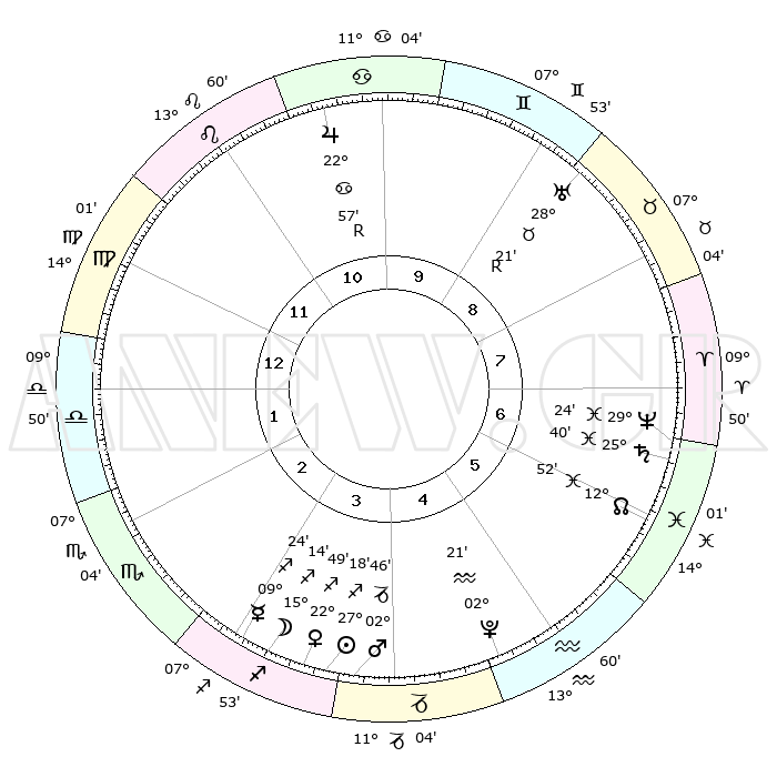 | | ΘΕΣΕΙΣ ΠΛΑΝΗΤΩΝ ΑΣΤΡΟΛΟΓΙΚΟΥ ΧΑΡΤΗ ΤΗΣ ΣΤΙΓΜΗΣ ΑΥΤΗΣ | | | | Πλανήτης | Ζώδιο | Μοίρες | Δεκαήμ. | Σε οίκο | Απόκλιση | | Ακμές των οίκων | | Ηλιος | Τοξότης | 27°13' | Τρίτο | 4 | 23 S 24 | | 1ος | 15°53' | Παρθένος | | Σελήνη | Τοξότης | 14°16' | Δεύτερο | 4 | 27 S 28 | | 2ος | 11°19' | Ζυγός | | Ερμής | Τοξότης | 09°17' | Πρώτο | 3 | 20 S 49 | | 3ος | 11°07' | Σκορπιός | | Αφροδίτη | Τοξότης | 22°43' | Τρίτο | 4 | 23 S 14 | | 4ος | 14°03' | Τοξότης | | Αρης | Αιγόκερως | 02°43' | Πρώτο | 4 | 24 S 12 | | 5ος | 17°23' | Αιγόκερως | | Δίας | Καρκίνος | 22°57'R | Τρίτο | 11 | 21 N 41 | | 6ος | 18°23' | Υδροχόος | | Κρόνος | Ιχθείς | 25°40' | Τρίτο | 7 | 03 S 50 | | 7ος | 15°53' | Ιχθείς | | Ουρανός | Ταύρος | 28°21'R | Τρίτο | 9 | 19 N 36 | | 8ος | 11°19' | Κριός | | Ποσειδώνας | Ιχθείς | 29°24' | Τρίτο | 7 | 01 S 28 | | 9ος | 11°07' | Ταύρος | | Πλούτωνας | Υδροχόος | 02°21' | Πρώτο | 5 | 23 S 18 | | 10ος | 14°03' | Δίδυμοι | | Β. Δεσμός | Ιχθείς | 12°52' | Δεύτερο | 6 | 06 S 44 | | 11ος | 17°23' | Καρκίνος | | Ωροσκόπος | Παρθένος | 15°53' | Δεύτερο | | | 12ος | 18°23' | Λέων | | Μεσουράνημα | Δίδυμοι | 14°03' | Δεύτερο | | | |
