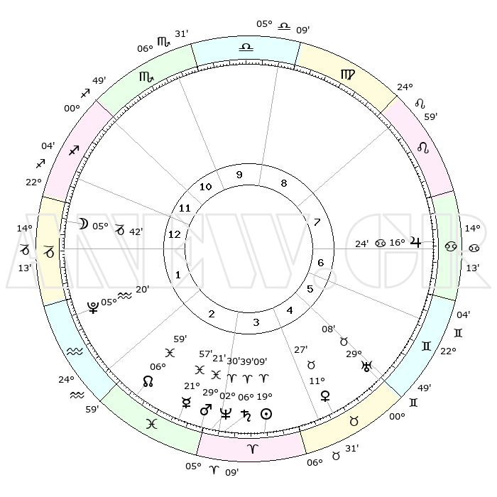 | | ΘΕΣΕΙΣ ΠΛΑΝΗΤΩΝ ΑΣΤΡΟΛΟΓΙΚΟΥ ΧΑΡΤΗ ΤΗΣ ΣΤΙΓΜΗΣ ΑΥΤΗΣ | | | | Πλανήτης | Ζώδιο | Μοίρες | Δεκαήμ. | Σε οίκο | Απόκλιση | | Ακμές των οίκων | | Ηλιος | Κριός | 19°04' | Δεύτερο | 4 | 07 N 28 | | 1ος | 19°15' | Τοξότης | | Σελήνη | Αιγόκερως | 04°49' | Πρώτο | 1 | 27 S 58 | | 2ος | 23°50' | Αιγόκερως | | Ερμής | Ιχθείς | 21°52' | Τρίτο | 3 | 05 S 18 | | 3ος | 02°40' | Ιχθείς | | Αφροδίτη | Ταύρος | 11°22' | Δεύτερο | 5 | 15 N 08 | | 4ος | 08°02' | Κριός | | Αρης | Ιχθείς | 29°18' | Τρίτο | 3 | 01 S 12 | | 5ος | 06°07' | Ταύρος | | Δίας | Καρκίνος | 16°23' | Δεύτερο | 7 | 22 N 48 | | 6ος | 28°49' | Ταύρος | | Κρόνος | Κριός | 06°38' | Πρώτο | 3 | 00 N 40 | | 7ος | 19°15' | Δίδυμοι | | Ουρανός | Ταύρος | 29°08' | Τρίτο | 6 | 19 N 48 | | 8ος | 23°50' | Καρκίνος | | Ποσειδώνας | Κριός | 02°30' | Πρώτο | 3 | 00 S 12 | | 9ος | 02°40' | Παρθένος | | Πλούτωνας | Υδροχόος | 05°20' | Πρώτο | 2 | 22 S 47 | | 10ος | 08°02' | Ζυγός | | Β. Δεσμός | Ιχθείς | 06°59' | Πρώτο | 3 | 08 S 57 | | 11ος | 06°07' | Σκορπιός | | Ωροσκόπος | Τοξότης | 19°15' | Δεύτερο | | | 12ος | 28°49' | Σκορπιός | | Μεσουράνημα | Ζυγός | 08°02' | Πρώτο | | | |