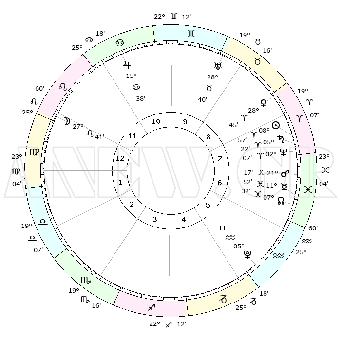 | | ΘΕΣΕΙΣ ΠΛΑΝΗΤΩΝ ΑΣΤΡΟΛΟΓΙΚΟΥ ΧΑΡΤΗ ΤΗΣ ΣΤΙΓΜΗΣ ΑΥΤΗΣ | | | | Πλανήτης | Ζώδιο | Μοίρες | Δεκαήμ. | Σε οίκο | Απόκλιση | | Ακμές των οίκων | | Ηλιος | Κριός | 08°53' | Πρώτο | 8 | 03 N 31 | | 1ος | 04°55' | Παρθένος | | Σελήνη | Λέων | 26°52' | Τρίτο | 12 | 13 N 34 | | 2ος | 29°17' | Παρθένος | | Ερμής | Ιχθείς | 11°49' | Δεύτερο | 7 | 07 S 57 | | 3ος | 28°22' | Ζυγός | | Αφροδίτη | Κριός | 28°40' | Τρίτο | 9 | 10 N 30 | | 4ος | 01°19' | Τοξότης | | Αρης | Ιχθείς | 21°14' | Τρίτο | 7 | 04 S 27 | | 5ος | 05°12' | Αιγόκερως | | Δίας | Καρκίνος | 15°38' | Δεύτερο | 11 | 22 N 53 | | 6ος | 06°48' | Υδροχόος | | Κρόνος | Κριός | 05°22' | Πρώτο | 8 | 00 N 11 | | 7ος | 04°55' | Ιχθείς | | Ουρανός | Ταύρος | 28°40' | Τρίτο | 9 | 19 N 41 | | 8ος | 29°17' | Ιχθείς | | Ποσειδώνας | Κριός | 02°07' | Πρώτο | 8 | 00 S 21 | | 9ος | 28°22' | Κριός | | Πλούτωνας | Υδροχόος | 05°11' | Πρώτο | 5 | 22 S 48 | | 10ος | 01°19' | Δίδυμοι | | Β. Δεσμός | Ιχθείς | 07°32' | Πρώτο | 7 | 08 S 45 | | 11ος | 05°12' | Καρκίνος | | Ωροσκόπος | Παρθένος | 04°55' | Πρώτο | | | 12ος | 06°48' | Λέων | | Μεσουράνημα | Δίδυμοι | 01°19' | Πρώτο | | | |