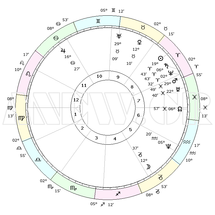 | | ΘΕΣΕΙΣ ΠΛΑΝΗΤΩΝ ΑΣΤΡΟΛΟΓΙΚΟΥ ΧΑΡΤΗ ΤΗΣ ΣΤΙΓΜΗΣ ΑΥΤΗΣ | | | | Πλανήτης | Ζώδιο | Μοίρες | Δεκαήμ. | Σε οίκο | Απόκλιση | | Ακμές των οίκων | | Ηλιος | Κριός | 19°39' | Δεύτερο | 9 | 07 N 41 | | 1ος | 19°26' | Λέων | | Σελήνη | Αιγόκερως | 11°51' | Δεύτερο | 5 | 27 S 11 | | 2ος | 12°11' | Παρθένος | | Ερμής | Ιχθείς | 22°35' | Τρίτο | 8 | 05 S 03 | | 3ος | 09°45' | Ζυγός | | Αφροδίτη | Ταύρος | 12°05' | Δεύτερο | 9 | 15 N 23 | | 4ος | 12°24' | Σκορπιός | | Αρης | Ιχθείς | 29°46' | Τρίτο | 8 | 01 S 01 | | 5ος | 17°21' | Τοξότης | | Δίας | Καρκίνος | 16°26' | Δεύτερο | 11 | 22 N 48 | | 6ος | 20°19' | Αιγόκερως | | Κρόνος | Κριός | 06°43' | Πρώτο | 8 | 00 N 42 | | 7ος | 19°26' | Υδροχόος | | Ουρανός | Ταύρος | 29°09' | Τρίτο | 10 | 19 N 48 | | 8ος | 12°11' | Ιχθείς | | Ποσειδώνας | Κριός | 02°32' | Πρώτο | 8 | 00 S 12 | | 9ος | 09°45' | Κριός | | Πλούτωνας | Υδροχόος | 05°20' | Πρώτο | 6 | 22 S 47 | | 10ος | 12°24' | Ταύρος | | Β. Δεσμός | Ιχθείς | 06°57' | Πρώτο | 7 | 08 S 57 | | 11ος | 17°21' | Δίδυμοι | | Ωροσκόπος | Λέων | 19°26' | Δεύτερο | | | 12ος | 20°19' | Καρκίνος | | Μεσουράνημα | Ταύρος | 12°24' | Δεύτερο | | | |