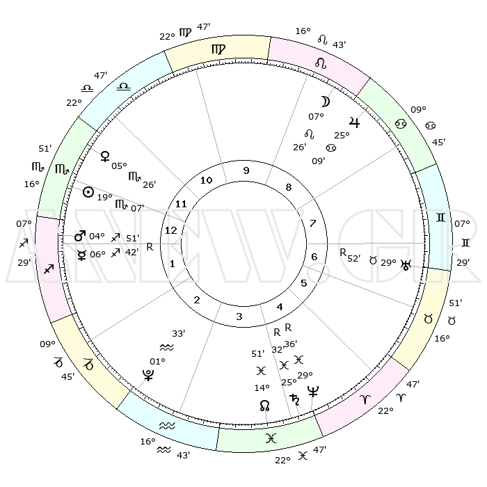 | | ΘΕΣΕΙΣ ΠΛΑΝΗΤΩΝ ΑΣΤΡΟΛΟΓΙΚΟΥ ΧΑΡΤΗ ΤΗΣ ΣΤΙΓΜΗΣ ΑΥΤΗΣ | | | | Πλανήτης | Ζώδιο | Μοίρες | Δεκαήμ. | Σε οίκο | Απόκλιση | | Ακμές των οίκων | | Ηλιος | Σκορπιός | 19°03' | Δεύτερο | 1 | 17 S 29 | | 1ος | 16°60' | Σκορπιός | | Σελήνη | Λέων | 06°29' | Πρώτο | 9 | 21 N 48 | | 2ος | 16°39' | Τοξότης | | Ερμής | Τοξότης | 06°43'R | Πρώτο | 1 | 23 S 31 | | 3ος | 20°23' | Αιγόκερως | | Αφροδίτη | Σκορπιός | 05°21' | Πρώτο | 12 | 12 S 05 | | 4ος | 25°48' | Υδροχόος | | Αρης | Τοξότης | 04°48' | Πρώτο | 1 | 21 S 34 | | 5ος | 28°06' | Ιχθείς | | Δίας | Καρκίνος | 25°09' | Τρίτο | 9 | 21 N 12 | | 6ος | 24°53' | Κριός | | Κρόνος | Ιχθείς | 25°32'R | Τρίτο | 4 | 04 S 01 | | 7ος | 16°60' | Ταύρος | | Ουρανός | Ταύρος | 29°52'R | Τρίτο | 7 | 19 N 55 | | 8ος | 16°39' | Δίδυμοι | | Ποσειδώνας | Ιχθείς | 29°36'R | Τρίτο | 5 | 01 S 24 | | 9ος | 20°23' | Καρκίνος | | Πλούτωνας | Υδροχόος | 01°33' | Πρώτο | 3 | 23 S 29 | | 10ος | 25°48' | Λέων | | Β. Δεσμός | Ιχθείς | 14°52' | Δεύτερο | 4 | 05 S 58 | | 11ος | 28°06' | Παρθένος | | Ωροσκόπος | Σκορπιός | 16°60' | Δεύτερο | | | 12ος | 24°53' | Ζυγός | | Μεσουράνημα | Λέων | 25°48' | Τρίτο | | | |