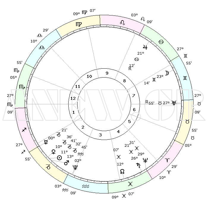 | | ΘΕΣΕΙΣ ΠΛΑΝΗΤΩΝ ΑΣΤΡΟΛΟΓΙΚΟΥ ΧΑΡΤΗ ΤΗΣ ΣΤΙΓΜΗΣ ΑΥΤΗΣ | | | | Πλανήτης | Ζώδιο | Μοίρες | Δεκαήμ. | Σε οίκο | Απόκλιση | | Ακμές των οίκων | | Ηλιος | Αιγόκερως | 11°37' | Δεύτερο | 3 | 22 S 56 | | 1ος | 07°14' | Σκορπιός | | Σελήνη | Δίδυμοι | 22°12' | Τρίτο | 8 | 28 N 10 | | 2ος | 06°07' | Τοξότης | | Ερμής | Αιγόκερως | 00°14' | Πρώτο | 2 | 24 S 07 | | 3ος | 08°43' | Αιγόκερως | | Αφροδίτη | Αιγόκερως | 10°31' | Δεύτερο | 3 | 23 S 33 | | 4ος | 13°25' | Υδροχόος | | Αρης | Αιγόκερως | 13°29' | Δεύτερο | 3 | 23 S 39 | | 5ος | 16°11' | Ιχθείς | | Δίας | Καρκίνος | 21°13'R | Τρίτο | 9 | 22 N 00 | | 6ος | 14°08' | Κριός | | Κρόνος | Ιχθείς | 26°21' | Τρίτο | 5 | 03 S 31 | | 7ος | 07°14' | Ταύρος | | Ουρανός | Ταύρος | 27°55'R | Τρίτο | 7 | 19 N 30 | | 8ος | 06°07' | Δίδυμοι | | Ποσειδώνας | Ιχθείς | 29°31' | Τρίτο | 5 | 01 S 25 | | 9ος | 08°43' | Καρκίνος | | Πλούτωνας | Υδροχόος | 02°45' | Πρώτο | 3 | 23 S 13 | | 10ος | 13°25' | Λέων | | Β. Δεσμός | Ιχθείς | 12°07' | Δεύτερο | 4 | 07 S 01 | | 11ος | 16°11' | Παρθένος | | Ωροσκόπος | Σκορπιός | 07°14' | Πρώτο | | | 12ος | 14°08' | Ζυγός | | Μεσουράνημα | Λέων | 13°25' | Δεύτερο | | | |