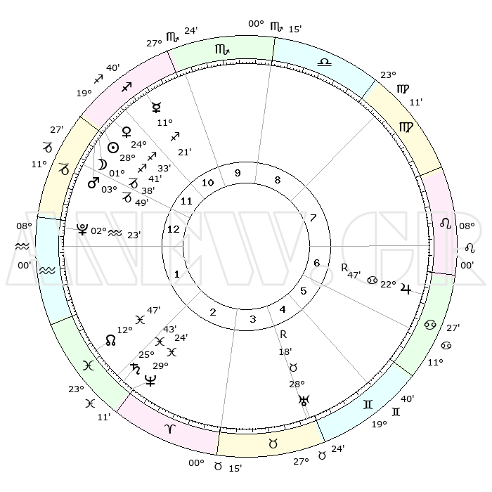 | | ΘΕΣΕΙΣ ΠΛΑΝΗΤΩΝ ΑΣΤΡΟΛΟΓΙΚΟΥ ΧΑΡΤΗ ΤΗΣ ΣΤΙΓΜΗΣ ΑΥΤΗΣ | | | | Πλανήτης | Ζώδιο | Μοίρες | Δεκαήμ. | Σε οίκο | Απόκλιση | | Ακμές των οίκων | | Ηλιος | Τοξότης | 27°34' | Τρίτο | 12 | 23 S 25 | | 1ος | 28°41' | Τοξότης | | Σελήνη | Τοξότης | 18°25' | Δεύτερο | 12 | 27 S 53 | | 2ος | 05°30' | Υδροχόος | | Ερμής | Τοξότης | 09°47' | Πρώτο | 12 | 20 S 56 | | 3ος | 15°24' | Ιχθείς | | Αφροδίτη | Τοξότης | 23°10' | Τρίτο | 12 | 23 S 16 | | 4ος | 19°33' | Κριός | | Αρης | Αιγόκερως | 02°59' | Πρώτο | 1 | 24 S 12 | | 5ος | 16°05' | Ταύρος | | Δίας | Καρκίνος | 22°55'R | Τρίτο | 7 | 21 N 41 | | 6ος | 07°58' | Δίδυμοι | | Κρόνος | Ιχθείς | 25°41' | Τρίτο | 3 | 03 S 50 | | 7ος | 28°41' | Δίδυμοι | | Ουρανός | Ταύρος | 28°21'R | Τρίτο | 5 | 19 N 35 | | 8ος | 05°30' | Λέων | | Ποσειδώνας | Ιχθείς | 29°24' | Τρίτο | 3 | 01 S 28 | | 9ος | 15°24' | Παρθένος | | Πλούτωνας | Υδροχόος | 02°21' | Πρώτο | 1 | 23 S 18 | | 10ος | 19°33' | Ζυγός | | Β. Δεσμός | Ιχθείς | 12°51' | Δεύτερο | 2 | 06 S 44 | | 11ος | 16°05' | Σκορπιός | | Ωροσκόπος | Τοξότης | 28°41' | Τρίτο | | | 12ος | 07°58' | Τοξότης | | Μεσουράνημα | Ζυγός | 19°33' | Δεύτερο | | | |