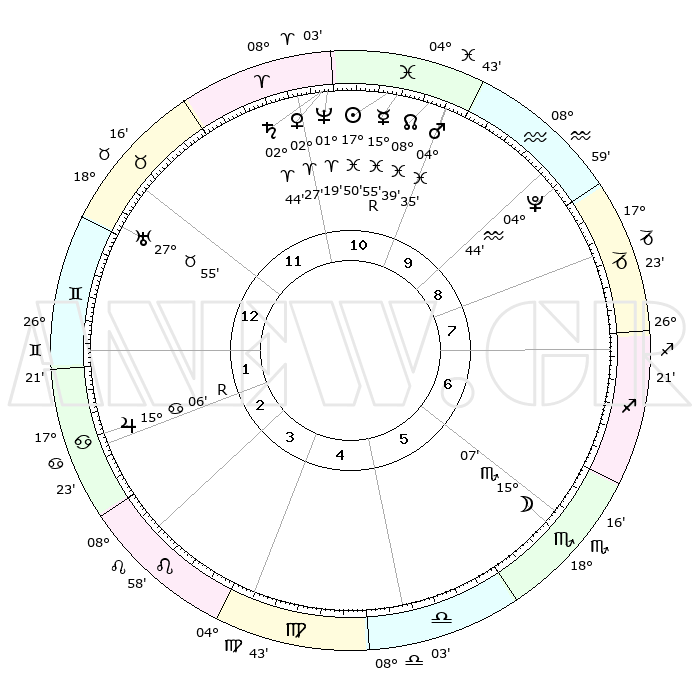 | | ΘΕΣΕΙΣ ΠΛΑΝΗΤΩΝ ΑΣΤΡΟΛΟΓΙΚΟΥ ΧΑΡΤΗ ΤΗΣ ΣΤΙΓΜΗΣ ΑΥΤΗΣ | | | | Πλανήτης | Ζώδιο | Μοίρες | Δεκαήμ. | Σε οίκο | Απόκλιση | | Ακμές των οίκων | | Ηλιος | Ιχθείς | 17°47' | Δεύτερο | 11 | 04 S 50 | | 1ος | 05°01' | Δίδυμοι | | Σελήνη | Σκορπιός | 14°26' | Δεύτερο | 6 | 20 S 44 | | 2ος | 28°52' | Δίδυμοι | | Ερμής | Ιχθείς | 15°59'R | Δεύτερο | 11 | 02 S 14 | | 3ος | 20°08' | Καρκίνος | | Αφροδίτη | Κριός | 02°23' | Πρώτο | 11 | 00 S 10 | | 4ος | 13°18' | Λέων | | Αρης | Ιχθείς | 04°33' | Πρώτο | 10 | 10 S 52 | | 5ος | 12°39' | Παρθένος | | Δίας | Καρκίνος | 15°06'R | Δεύτερο | 2 | 22 N 56 | | 6ος | 21°49' | Ζυγός | | Κρόνος | Κριός | 02°44' | Πρώτο | 11 | 00 S 52 | | 7ος | 05°01' | Τοξότης | | Ουρανός | Ταύρος | 27°55' | Τρίτο | 12 | 19 N 31 | | 8ος | 28°52' | Τοξότης | | Ποσειδώνας | Κριός | 01°19' | Πρώτο | 11 | 00 S 40 | | 9ος | 20°08' | Αιγόκερως | | Πλούτωνας | Υδροχόος | 04°44' | Πρώτο | 9 | 22 S 51 | | 10ος | 13°18' | Υδροχόος | | Β. Δεσμός | Ιχθείς | 08°39' | Πρώτο | 10 | 08 S 19 | | 11ος | 12°39' | Ιχθείς | | Ωροσκόπος | Δίδυμοι | 05°01' | Πρώτο | | | 12ος | 21°49' | Κριός | | Μεσουράνημα | Υδροχόος | 13°18' | Δεύτερο | | | |