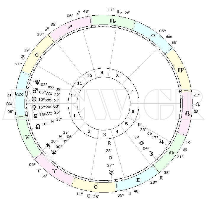 | | ΘΕΣΕΙΣ ΠΛΑΝΗΤΩΝ ΑΣΤΡΟΛΟΓΙΚΟΥ ΧΑΡΤΗ ΤΗΣ ΣΤΙΓΜΗΣ ΑΥΤΗΣ | | | | Πλανήτης | Ζώδιο | Μοίρες | Δεκαήμ. | Σε οίκο | Απόκλιση | | Ακμές των οίκων | | Ηλιος | Υδροχόος | 10°18' | Δεύτερο | 1 | 17 S 39 | | 1ος | 23°46' | Αιγόκερως | | Σελήνη | Καρκίνος | 03°45' | Πρώτο | 6 | 28 N 07 | | 2ος | 06°43' | Ιχθείς | | Ερμής | Υδροχόος | 16°18' | Δεύτερο | 1 | 17 S 50 | | 3ος | 16°02' | Κριός | | Αφροδίτη | Υδροχόος | 15°55' | Δεύτερο | 1 | 17 S 20 | | 4ος | 15°37' | Ταύρος | | Αρης | Υδροχόος | 05°19' | Πρώτο | 1 | 19 S 56 | | 5ος | 08°53' | Δίδυμοι | | Δίας | Καρκίνος | 17°34'R | Δεύτερο | 6 | 22 N 35 | | 6ος | 00°09' | Καρκίνος | | Κρόνος | Ιχθείς | 28°35' | Τρίτο | 2 | 02 S 34 | | 7ος | 23°46' | Καρκίνος | | Ουρανός | Ταύρος | 27°28'R | Τρίτο | 4 | 19 N 24 | | 8ος | 06°43' | Παρθένος | | Ποσειδώνας | Κριός | 00°06' | Πρώτο | 2 | 01 S 10 | | 9ος | 16°02' | Ζυγός | | Πλούτωνας | Υδροχόος | 03°39' | Πρώτο | 1 | 23 S 02 | | 10ος | 15°37' | Σκορπιός | | Β. Δεσμός | Ιχθείς | 10°37' | Δεύτερο | 2 | 07 S 35 | | 11ος | 08°53' | Τοξότης | | Ωροσκόπος | Αιγόκερως | 23°46' | Τρίτο | | | 12ος | 00°09' | Αιγόκερως | | Μεσουράνημα | Σκορπιός | 15°37' | Δεύτερο | | | |