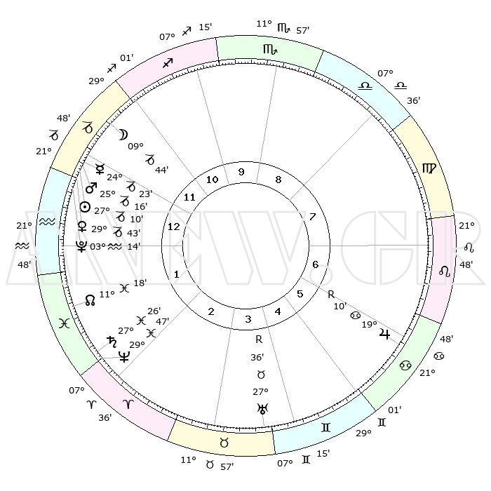 | | ΘΕΣΕΙΣ ΠΛΑΝΗΤΩΝ ΑΣΤΡΟΛΟΓΙΚΟΥ ΧΑΡΤΗ ΤΗΣ ΣΤΙΓΜΗΣ ΑΥΤΗΣ | | | | Πλανήτης | Ζώδιο | Μοίρες | Δεκαήμ. | Σε οίκο | Απόκλιση | | Ακμές των οίκων | | Ηλιος | Αιγόκερως | 27°05' | Τρίτο | 1 | 20 S 44 | | 1ος | 15°56' | Αιγόκερως | | Σελήνη | Αιγόκερως | 08°44' | Πρώτο | 12 | 27 S 38 | | 2ος | 27°06' | Υδροχόος | | Ερμής | Αιγόκερως | 24°15' | Τρίτο | 1 | 23 S 08 | | 3ος | 07°10' | Κριός | | Αφροδίτη | Αιγόκερως | 29°37' | Τρίτο | 1 | 21 S 15 | | 4ος | 08°13' | Ταύρος | | Αρης | Αιγόκερως | 25°12' | Τρίτο | 1 | 22 S 03 | | 5ος | 02°19' | Δίδυμοι | | Δίας | Καρκίνος | 19°11'R | Δεύτερο | 7 | 22 N 20 | | 6ος | 23°32' | Δίδυμοι | | Κρόνος | Ιχθείς | 27°25' | Τρίτο | 2 | 03 S 03 | | 7ος | 15°55' | Καρκίνος | | Ουρανός | Ταύρος | 27°36'R | Τρίτο | 4 | 19 N 26 | | 8ος | 27°06' | Λέων | | Ποσειδώνας | Ιχθείς | 29°47' | Τρίτο | 2 | 01 S 18 | | 9ος | 07°10' | Ζυγός | | Πλούτωνας | Υδροχόος | 03°14' | Πρώτο | 1 | 23 S 07 | | 10ος | 08°13' | Σκορπιός | | Β. Δεσμός | Ιχθείς | 11°19' | Δεύτερο | 2 | 07 S 19 | | 11ος | 02°19' | Τοξότης | | Ωροσκόπος | Αιγόκερως | 15°56' | Δεύτερο | | | 12ος | 23°32' | Τοξότης | | Μεσουράνημα | Σκορπιός | 08°13' | Πρώτο | | | |