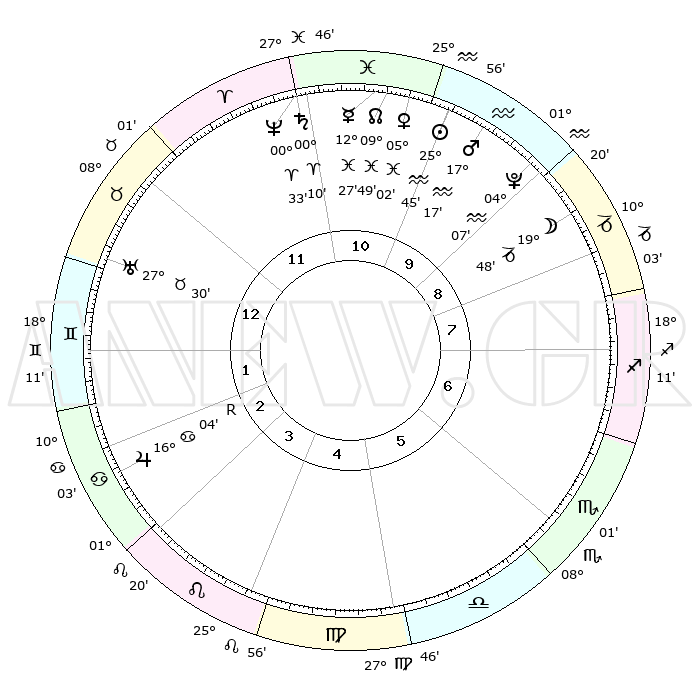 | | ΘΕΣΕΙΣ ΠΛΑΝΗΤΩΝ ΑΣΤΡΟΛΟΓΙΚΟΥ ΧΑΡΤΗ ΤΗΣ ΣΤΙΓΜΗΣ ΑΥΤΗΣ | | | | Πλανήτης | Ζώδιο | Μοίρες | Δεκαήμ. | Σε οίκο | Απόκλιση | | Ακμές των οίκων | | Ηλιος | Υδροχόος | 25°40' | Τρίτο | 10 | 12 S 58 | | 1ος | 17°28' | Ταύρος | | Σελήνη | Αιγόκερως | 18°53' | Δεύτερο | 9 | 26 S 06 | | 2ος | 15°05' | Δίδυμοι | | Ερμής | Ιχθείς | 12°21' | Δεύτερο | 11 | 07 S 00 | | 3ος | 07°09' | Καρκίνος | | Αφροδίτη | Ιχθείς | 04°57' | Πρώτο | 11 | 11 S 04 | | 4ος | 29°12' | Καρκίνος | | Αρης | Υδροχόος | 17°14' | Δεύτερο | 10 | 16 S 42 | | 5ος | 25°42' | Λέων | | Δίας | Καρκίνος | 16°04'R | Δεύτερο | 3 | 22 N 47 | | 6ος | 01°54' | Ζυγός | | Κρόνος | Κριός | 00°09' | Πρώτο | 11 | 01 S 55 | | 7ος | 17°28' | Σκορπιός | | Ουρανός | Ταύρος | 27°30' | Τρίτο | 1 | 19 N 25 | | 8ος | 15°05' | Τοξότης | | Ποσειδώνας | Κριός | 00°33' | Πρώτο | 11 | 00 S 59 | | 9ος | 07°09' | Αιγόκερως | | Πλούτωνας | Υδροχόος | 04°07' | Πρώτο | 10 | 22 S 57 | | 10ος | 29°12' | Αιγόκερως | | Β. Δεσμός | Ιχθείς | 09°49' | Πρώτο | 11 | 07 S 53 | | 11ος | 25°42' | Υδροχόος | | Ωροσκόπος | Ταύρος | 17°28' | Δεύτερο | | | 12ος | 01°54' | Κριός | | Μεσουράνημα | Αιγόκερως | 29°12' | Τρίτο | | | |