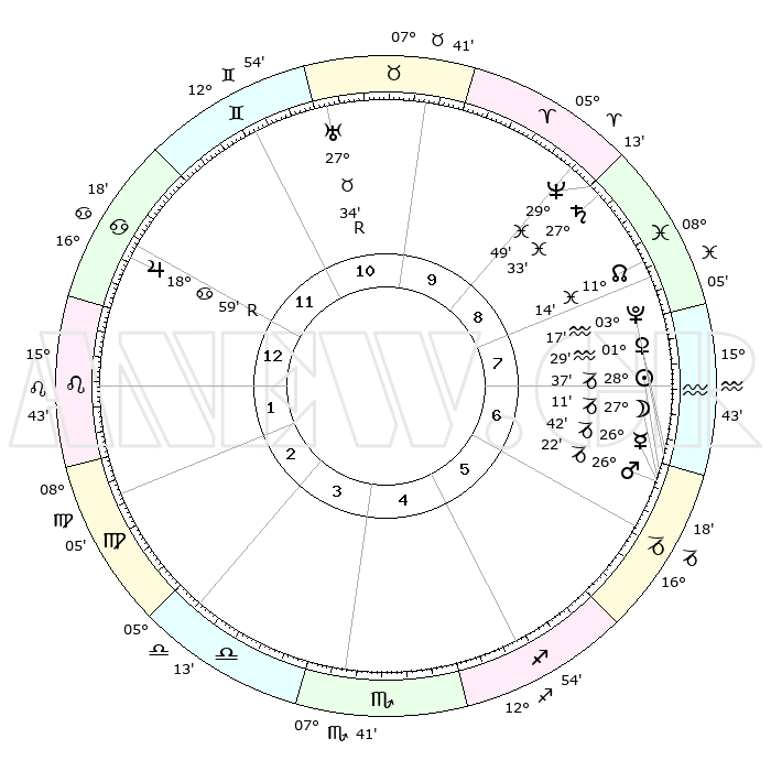 | | ΘΕΣΕΙΣ ΠΛΑΝΗΤΩΝ ΑΣΤΡΟΛΟΓΙΚΟΥ ΧΑΡΤΗ ΤΗΣ ΣΤΙΓΜΗΣ ΑΥΤΗΣ | | | | Πλανήτης | Ζώδιο | Μοίρες | Δεκαήμ. | Σε οίκο | Απόκλιση | | Ακμές των οίκων | | Ηλιος | Αιγόκερως | 28°33' | Τρίτο | 7 | 20 S 27 | | 1ος | 28°09' | Καρκίνος | | Σελήνη | Αιγόκερως | 26°26' | Τρίτο | 6 | 24 S 19 | | 2ος | 19°05' | Λέων | | Ερμής | Αιγόκερως | 26°36' | Τρίτο | 6 | 22 S 45 | | 3ος | 13°53' | Παρθένος | | Αφροδίτη | Υδροχόος | 01°25' | Πρώτο | 7 | 20 S 54 | | 4ος | 14°41' | Ζυγός | | Αρης | Αιγόκερως | 26°19' | Τρίτο | 6 | 21 S 51 | | 5ος | 20°45' | Σκορπιός | | Δίας | Καρκίνος | 18°60'R | Δεύτερο | 12 | 22 N 22 | | 6ος | 26°46' | Τοξότης | | Κρόνος | Ιχθείς | 27°32' | Τρίτο | 9 | 03 S 00 | | 7ος | 28°09' | Αιγόκερως | | Ουρανός | Ταύρος | 27°34'R | Τρίτο | 11 | 19 N 26 | | 8ος | 19°05' | Υδροχόος | | Ποσειδώνας | Ιχθείς | 29°49' | Τρίτο | 9 | 01 S 17 | | 9ος | 13°53' | Ιχθείς | | Πλούτωνας | Υδροχόος | 03°16' | Πρώτο | 7 | 23 S 06 | | 10ος | 14°41' | Κριός | | Β. Δεσμός | Ιχθείς | 11°14' | Δεύτερο | 8 | 07 S 21 | | 11ος | 20°45' | Ταύρος | | Ωροσκόπος | Καρκίνος | 28°09' | Τρίτο | | | 12ος | 26°46' | Δίδυμοι | | Μεσουράνημα | Κριός | 14°41' | Δεύτερο | | | |