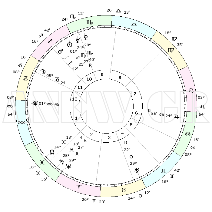 | | ΘΕΣΕΙΣ ΠΛΑΝΗΤΩΝ ΑΣΤΡΟΛΟΓΙΚΟΥ ΧΑΡΤΗ ΤΗΣ ΣΤΙΓΜΗΣ ΑΥΤΗΣ | | | | Πλανήτης | Ζώδιο | Μοίρες | Δεκαήμ. | Σε οίκο | Απόκλιση | | Ακμές των οίκων | | Ηλιος | Τοξότης | 01°18' | Πρώτο | 11 | 20 S 25 | | 1ος | 10°16' | Αιγόκερως | | Σελήνη | Αιγόκερως | 04°41' | Πρώτο | 12 | 28 S 03 | | 2ος | 20°03' | Υδροχόος | | Ερμής | Σκορπιός | 24°31'R | Τρίτο | 10 | 17 S 28 | | 3ος | 00°20' | Κριός | | Αφροδίτη | Σκορπιός | 20°35' | Τρίτο | 10 | 16 S 58 | | 4ος | 02°28' | Ταύρος | | Αρης | Τοξότης | 13°39' | Δεύτερο | 11 | 23 S 02 | | 5ος | 27°16' | Ταύρος | | Δίας | Καρκίνος | 24°55'R | Τρίτο | 7 | 21 N 17 | | 6ος | 18°35' | Δίδυμοι | | Κρόνος | Ιχθείς | 25°18'R | Τρίτο | 2 | 04 S 04 | | 7ος | 10°16' | Καρκίνος | | Ουρανός | Ταύρος | 29°22'R | Τρίτο | 5 | 19 N 48 | | 8ος | 20°03' | Λέων | | Ποσειδώνας | Ιχθείς | 29°27'R | Τρίτο | 2 | 01 S 28 | | 9ος | 00°20' | Ζυγός | | Πλούτωνας | Υδροχόος | 01°45' | Πρώτο | 1 | 23 S 26 | | 10ος | 02°28' | Σκορπιός | | Β. Δεσμός | Ιχθείς | 14°13' | Δεύτερο | 2 | 06 S 13 | | 11ος | 27°16' | Σκορπιός | | Ωροσκόπος | Αιγόκερως | 10°16' | Δεύτερο | | | 12ος | 18°35' | Τοξότης | | Μεσουράνημα | Σκορπιός | 02°28' | Πρώτο | | | |