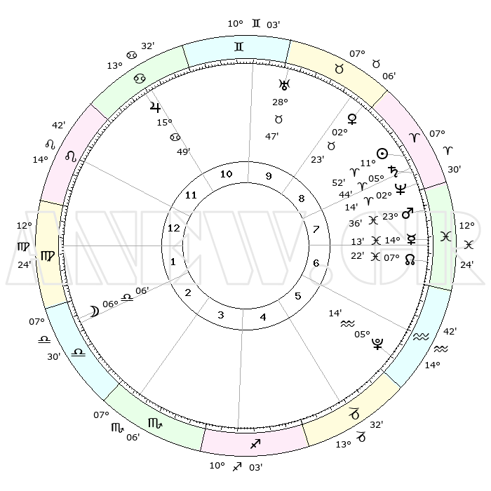 | | ΘΕΣΕΙΣ ΠΛΑΝΗΤΩΝ ΑΣΤΡΟΛΟΓΙΚΟΥ ΧΑΡΤΗ ΤΗΣ ΣΤΙΓΜΗΣ ΑΥΤΗΣ | | | | Πλανήτης | Ζώδιο | Μοίρες | Δεκαήμ. | Σε οίκο | Απόκλιση | | Ακμές των οίκων | | Ηλιος | Κριός | 11°49' | Δεύτερο | 8 | 04 N 40 | | 1ος | 23°58' | Λέων | | Σελήνη | Ζυγός | 05°17' | Πρώτο | 2 | 04 S 14 | | 2ος | 17°11' | Παρθένος | | Ερμής | Ιχθείς | 14°10' | Δεύτερο | 7 | 07 S 31 | | 3ος | 15°16' | Ζυγός | | Αφροδίτη | Ταύρος | 02°18' | Πρώτο | 9 | 11 N 53 | | 4ος | 18°04' | Σκορπιός | | Αρης | Ιχθείς | 23°33' | Τρίτο | 8 | 03 S 31 | | 5ος | 22°41' | Τοξότης | | Δίας | Καρκίνος | 15°49' | Δεύτερο | 11 | 22 N 52 | | 6ος | 25°10' | Αιγόκερως | | Κρόνος | Κριός | 05°44' | Πρώτο | 8 | 00 N 19 | | 7ος | 23°58' | Υδροχόος | | Ουρανός | Ταύρος | 28°47' | Τρίτο | 10 | 19 N 43 | | 8ος | 17°11' | Ιχθείς | | Ποσειδώνας | Κριός | 02°14' | Πρώτο | 8 | 00 S 19 | | 9ος | 15°16' | Κριός | | Πλούτωνας | Υδροχόος | 05°14' | Πρώτο | 6 | 22 S 47 | | 10ος | 18°04' | Ταύρος | | Β. Δεσμός | Ιχθείς | 07°23' | Πρώτο | 7 | 08 S 48 | | 11ος | 22°41' | Δίδυμοι | | Ωροσκόπος | Λέων | 23°58' | Τρίτο | | | 12ος | 25°10' | Καρκίνος | | Μεσουράνημα | Ταύρος | 18°04' | Δεύτερο | | | |