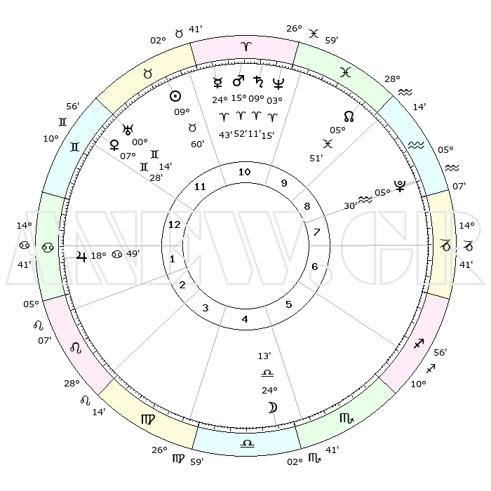 | | ΘΕΣΕΙΣ ΠΛΑΝΗΤΩΝ ΑΣΤΡΟΛΟΓΙΚΟΥ ΧΑΡΤΗ ΤΗΣ ΣΤΙΓΜΗΣ ΑΥΤΗΣ | | | | Πλανήτης | Ζώδιο | Μοίρες | Δεκαήμ. | Σε οίκο | Απόκλιση | | Ακμές των οίκων | | Ηλιος | Ταύρος | 08°23' | Πρώτο | 7 | 14 N 18 | | 1ος | 25°56' | Ζυγός | | Σελήνη | Ζυγός | 03°42' | Πρώτο | 12 | 03 S 33 | | 2ος | 24°06' | Σκορπιός | | Ερμής | Κριός | 21°43' | Τρίτο | 6 | 06 N 28 | | 3ος | 25°46' | Τοξότης | | Αφροδίτη | Δίδυμοι | 05°29' | Πρώτο | 8 | 22 N 00 | | 4ος | 29°41' | Αιγόκερως | | Αρης | Κριός | 14°36' | Δεύτερο | 6 | 04 N 55 | | 5ος | 02°38' | Ιχθείς | | Δίας | Καρκίνος | 18°36' | Δεύτερο | 9 | 22 N 32 | | 6ος | 01°39' | Κριός | | Κρόνος | Κριός | 08°60' | Πρώτο | 6 | 01 N 34 | | 7ος | 25°56' | Κριός | | Ουρανός | Δίδυμοι | 00°09' | Πρώτο | 8 | 20 N 01 | | 8ος | 24°06' | Ταύρος | | Ποσειδώνας | Κριός | 03°11' | Πρώτο | 6 | 00 N 03 | | 9ος | 25°46' | Δίδυμοι | | Πλούτωνας | Υδροχόος | 05°30' | Πρώτο | 4 | 22 S 48 | | 10ος | 29°41' | Καρκίνος | | Β. Δεσμός | Ιχθείς | 05°56' | Πρώτο | 5 | 09 S 20 | | 11ος | 02°38' | Παρθένος | | Ωροσκόπος | Ζυγός | 25°56' | Τρίτο | | | 12ος | 01°39' | Ζυγός | | Μεσουράνημα | Καρκίνος | 29°41' | Τρίτο | | | |