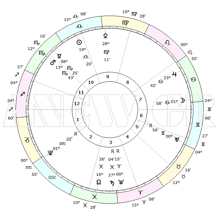 | ΘΕΣΕΙΣ ΠΛΑΝΗΤΩΝ ΑΣΤΡΟΛΟΓΙΚΟΥ ΧΑΡΤΗ ΤΗΣ ΣΤΙΓΜΗΣ ΑΥΤΗΣ | | Πλανήτης | Ζώδιο | Μοίρες | Δεκαήμ. | Σε οίκο | Απόκλιση | | Ακμές των οίκων | Ηλιος | Ζυγός | 19°14' | Δεύτερο | 11 | 07 S 32 | | 1ος | 25°40' | Σκορπιός | Σελήνη | Καρκίνος | 00°35' | Πρώτο | 8 | 28 N 31 | | 2ος | 26°14' | Τοξότης | Ερμής | Σκορπιός | 08°17' | Πρώτο | 12 | 15 S 37 | | 3ος | 01°14' | Υδροχόος | Αφροδίτη | Παρθένος | 28°04' | Τρίτο | 10 | 02 N 08 | | 4ος | 07°08' | Ιχθείς | Αρης | Σκορπιός | 13°39' | Δεύτερο | 12 | 16 S 07 | | 5ος | 08°40' | Κριός | Δίας | Καρκίνος | 23°41' | Τρίτο | 8 | 21 N 24 | | 6ος | 04°18' | Ταύρος | Κρόνος | Ιχθείς | 27°04'R | Τρίτο | 4 | 03 S 28 | | 7ος | 25°40' | Ταύρος | Ουρανός | Δίδυμοι | 00°56'R | Πρώτο | 7 | 20 N 08 | | 8ος | 26°14' | Δίδυμοι | Ποσειδώνας | Κριός | 00°15'R | Πρώτο | 4 | 01 S 10 | | 9ος | 01°14' | Λέων | Πλούτωνας | Υδροχόος | 01°22'R | Πρώτο | 3 | 23 S 32 | | 10ος | 07°08' | Παρθένος | Β. Δεσμός | Ιχθείς | 16°27' | Δεύτερο | 4 | 05 S 21 | | 11ος | 08°40' | Ζυγός | Ωροσκόπος | Σκορπιός | 25°40' | Τρίτο | | | 12ος | 04°18' | Σκορπιός | Μεσουράνημα | Παρθένος | 07°08' | Πρώτο | | | |