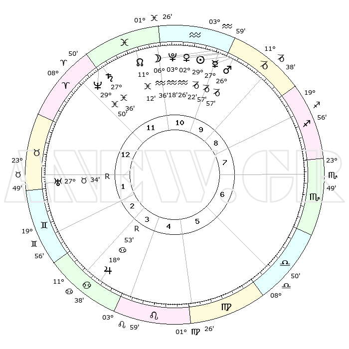 | | ΘΕΣΕΙΣ ΠΛΑΝΗΤΩΝ ΑΣΤΡΟΛΟΓΙΚΟΥ ΧΑΡΤΗ ΤΗΣ ΣΤΙΓΜΗΣ ΑΥΤΗΣ | | | | Πλανήτης | Ζώδιο | Μοίρες | Δεκαήμ. | Σε οίκο | Απόκλιση | | Ακμές των οίκων | | Ηλιος | Αιγόκερως | 29°18' | Τρίτο | 10 | 20 S 17 | | 1ος | 18°34' | Κριός | | Σελήνη | Υδροχόος | 05°44' | Πρώτο | 11 | 21 S 37 | | 2ος | 23°58' | Ταύρος | | Ερμής | Αιγόκερως | 27°50' | Τρίτο | 10 | 22 S 32 | | 3ος | 18°49' | Δίδυμοι | | Αφροδίτη | Υδροχόος | 02°21' | Πρώτο | 10 | 20 S 42 | | 4ος | 10°34' | Καρκίνος | | Αρης | Αιγόκερως | 26°54' | Τρίτο | 10 | 21 S 45 | | 5ος | 03°58' | Λέων | | Δίας | Καρκίνος | 18°54'R | Δεύτερο | 4 | 22 N 23 | | 6ος | 04°30' | Παρθένος | | Κρόνος | Ιχθείς | 27°36' | Τρίτο | 12 | 02 S 59 | | 7ος | 18°34' | Ζυγός | | Ουρανός | Ταύρος | 27°34'R | Τρίτο | 2 | 19 N 25 | | 8ος | 23°58' | Σκορπιός | | Ποσειδώνας | Ιχθείς | 29°50' | Τρίτο | 12 | 01 S 17 | | 9ος | 18°49' | Τοξότης | | Πλούτωνας | Υδροχόος | 03°18' | Πρώτο | 10 | 23 S 06 | | 10ος | 10°34' | Αιγόκερως | | Β. Δεσμός | Ιχθείς | 11°12' | Δεύτερο | 12 | 07 S 22 | | 11ος | 03°58' | Υδροχόος | | Ωροσκόπος | Κριός | 18°34' | Δεύτερο | | | 12ος | 04°30' | Ιχθείς | | Μεσουράνημα | Αιγόκερως | 10°34' | Δεύτερο | | | |