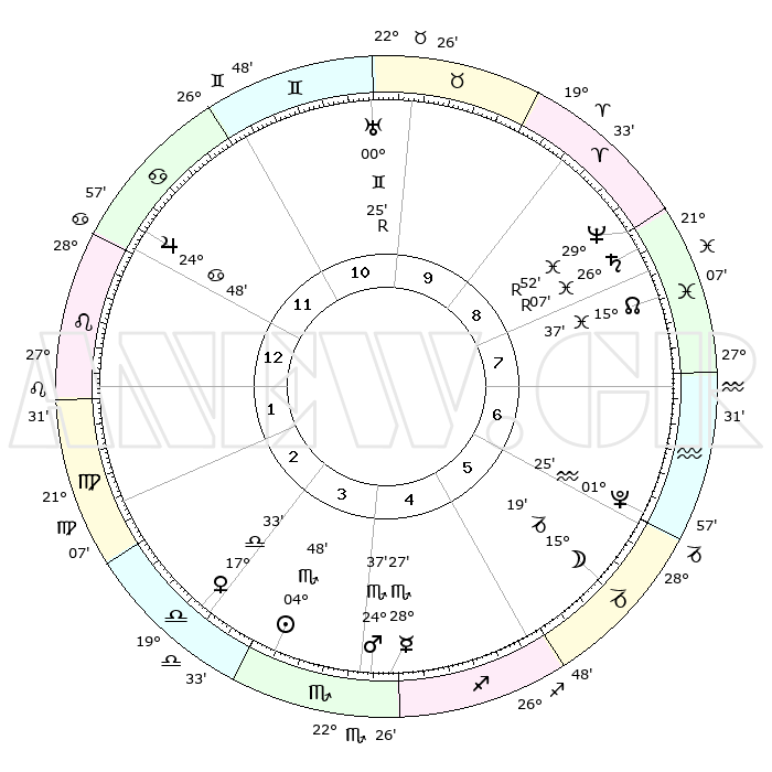 | | ΘΕΣΕΙΣ ΠΛΑΝΗΤΩΝ ΑΣΤΡΟΛΟΓΙΚΟΥ ΧΑΡΤΗ ΤΗΣ ΣΤΙΓΜΗΣ ΑΥΤΗΣ | | | | Πλανήτης | Ζώδιο | Μοίρες | Δεκαήμ. | Σε οίκο | Απόκλιση | | Ακμές των οίκων | | Ηλιος | Σκορπιός | 04°42' | Πρώτο | 4 | 13 S 05 | | 1ος | 29°19' | Καρκίνος | | Σελήνη | Αιγόκερως | 14°08' | Δεύτερο | 6 | 27 S 14 | | 2ος | 20°18' | Λέων | | Ερμής | Σκορπιός | 28°20' | Τρίτο | 5 | 22 S 30 | | 3ος | 15°15' | Παρθένος | | Αφροδίτη | Ζυγός | 17°25' | Δεύτερο | 4 | 05 S 26 | | 4ος | 16°12' | Ζυγός | | Αρης | Σκορπιός | 24°33' | Τρίτο | 5 | 19 S 15 | | 5ος | 22°16' | Σκορπιός | | Δίας | Καρκίνος | 24°48' | Τρίτο | 12 | 21 N 14 | | 6ος | 28°05' | Τοξότης | | Κρόνος | Ιχθείς | 26°07'R | Τρίτο | 9 | 03 S 49 | | 7ος | 29°19' | Αιγόκερως | | Ουρανός | Δίδυμοι | 00°26'R | Πρώτο | 11 | 20 N 02 | | 8ος | 20°18' | Υδροχόος | | Ποσειδώνας | Ιχθείς | 29°52'R | Τρίτο | 9 | 01 S 18 | | 9ος | 15°15' | Ιχθείς | | Πλούτωνας | Υδροχόος | 01°25' | Πρώτο | 7 | 23 S 31 | | 10ος | 16°12' | Κριός | | Β. Δεσμός | Ιχθείς | 15°37' | Δεύτερο | 9 | 05 S 40 | | 11ος | 22°16' | Ταύρος | | Ωροσκόπος | Καρκίνος | 29°19' | Τρίτο | | | 12ος | 28°05' | Δίδυμοι | | Μεσουράνημα | Κριός | 16°12' | Δεύτερο | | | |