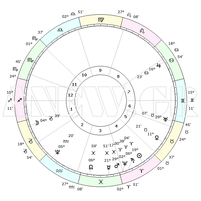 | | ΘΕΣΕΙΣ ΠΛΑΝΗΤΩΝ ΑΣΤΡΟΛΟΓΙΚΟΥ ΧΑΡΤΗ ΤΗΣ ΣΤΙΓΜΗΣ ΑΥΤΗΣ | | | | Πλανήτης | Ζώδιο | Μοίρες | Δεκαήμ. | Σε οίκο | Απόκλιση | | Ακμές των οίκων | | Ηλιος | Κριός | 18°59' | Δεύτερο | 5 | 07 N 26 | | 1ος | 23°24' | Σκορπιός | | Σελήνη | Αιγόκερως | 03°47' | Πρώτο | 2 | 28 S 02 | | 2ος | 23°42' | Τοξότης | | Ερμής | Ιχθείς | 21°46' | Τρίτο | 4 | 05 S 20 | | 3ος | 28°22' | Αιγόκερως | | Αφροδίτη | Ταύρος | 11°16' | Δεύτερο | 6 | 15 N 06 | | 4ος | 04°09' | Ιχθείς | | Αρης | Ιχθείς | 29°14' | Τρίτο | 4 | 01 S 14 | | 5ος | 05°55' | Κριός | | Δίας | Καρκίνος | 16°23' | Δεύτερο | 8 | 22 N 48 | | 6ος | 01°52' | Ταύρος | | Κρόνος | Κριός | 06°38' | Πρώτο | 5 | 00 N 40 | | 7ος | 23°24' | Ταύρος | | Ουρανός | Ταύρος | 29°07' | Τρίτο | 7 | 19 N 47 | | 8ος | 23°42' | Δίδυμοι | | Ποσειδώνας | Κριός | 02°30' | Πρώτο | 4 | 00 S 12 | | 9ος | 28°22' | Καρκίνος | | Πλούτωνας | Υδροχόος | 05°20' | Πρώτο | 3 | 22 S 47 | | 10ος | 04°09' | Παρθένος | | Β. Δεσμός | Ιχθείς | 06°59' | Πρώτο | 4 | 08 S 57 | | 11ος | 05°55' | Ζυγός | | Ωροσκόπος | Σκορπιός | 23°24' | Τρίτο | | | 12ος | 01°52' | Σκορπιός | | Μεσουράνημα | Παρθένος | 04°09' | Πρώτο | | | |