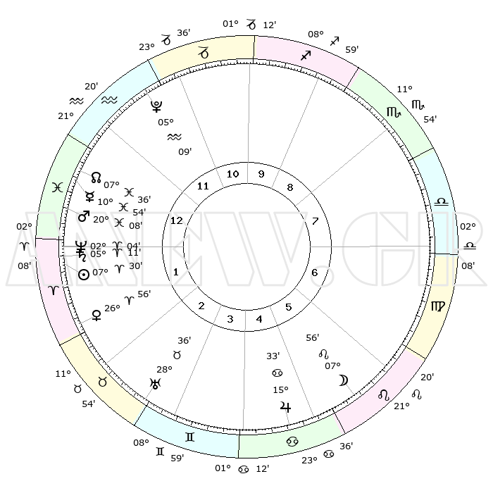 | | ΘΕΣΕΙΣ ΠΛΑΝΗΤΩΝ ΑΣΤΡΟΛΟΓΙΚΟΥ ΧΑΡΤΗ ΤΗΣ ΣΤΙΓΜΗΣ ΑΥΤΗΣ | | | | Πλανήτης | Ζώδιο | Μοίρες | Δεκαήμ. | Σε οίκο | Απόκλιση | | Ακμές των οίκων | | Ηλιος | Κριός | 07°22' | Πρώτο | 2 | 02 N 55 | | 1ος | 22°42' | Αιγόκερως | | Σελήνη | Λέων | 06°05' | Πρώτο | 7 | 21 N 29 | | 2ος | 05°25' | Ιχθείς | | Ερμής | Ιχθείς | 10°49' | Δεύτερο | 2 | 08 S 05 | | 3ος | 14°52' | Κριός | | Αφροδίτη | Κριός | 26°46' | Τρίτο | 3 | 09 N 45 | | 4ος | 14°38' | Ταύρος | | Αρης | Ιχθείς | 20°01' | Τρίτο | 2 | 04 S 55 | | 5ος | 08°01' | Δίδυμοι | | Δίας | Καρκίνος | 15°33' | Δεύτερο | 6 | 22 N 54 | | 6ος | 29°15' | Δίδυμοι | | Κρόνος | Κριός | 05°10' | Πρώτο | 2 | 00 N 06 | | 7ος | 22°42' | Καρκίνος | | Ουρανός | Ταύρος | 28°36' | Τρίτο | 4 | 19 N 40 | | 8ος | 05°25' | Παρθένος | | Ποσειδώνας | Κριός | 02°04' | Πρώτο | 2 | 00 S 23 | | 9ος | 14°52' | Ζυγός | | Πλούτωνας | Υδροχόος | 05°09' | Πρώτο | 1 | 22 S 48 | | 10ος | 14°38' | Σκορπιός | | Β. Δεσμός | Ιχθείς | 07°37' | Πρώτο | 2 | 08 S 43 | | 11ος | 08°01' | Τοξότης | | Ωροσκόπος | Αιγόκερως | 22°42' | Τρίτο | | | 12ος | 29°15' | Τοξότης | | Μεσουράνημα | Σκορπιός | 14°38' | Δεύτερο | | | |
