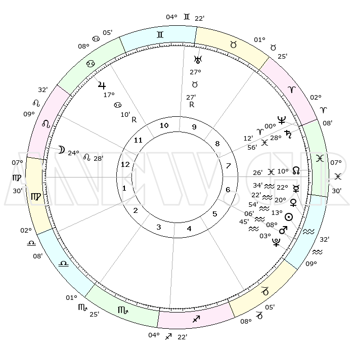 | | ΘΕΣΕΙΣ ΠΛΑΝΗΤΩΝ ΑΣΤΡΟΛΟΓΙΚΟΥ ΧΑΡΤΗ ΤΗΣ ΣΤΙΓΜΗΣ ΑΥΤΗΣ | | | | Πλανήτης | Ζώδιο | Μοίρες | Δεκαήμ. | Σε οίκο | Απόκλιση | | Ακμές των οίκων | | Ηλιος | Υδροχόος | 13°50' | Δεύτερο | 6 | 16 S 40 | | 1ος | 21°32' | Λέων | | Σελήνη | Λέων | 23°42' | Τρίτο | 1 | 14 N 55 | | 2ος | 14°30' | Παρθένος | | Ερμής | Υδροχόος | 22°28' | Τρίτο | 7 | 15 S 41 | | 3ος | 12°19' | Ζυγός | | Αφροδίτη | Υδροχόος | 20°18' | Τρίτο | 6 | 16 S 02 | | 4ος | 15°03' | Σκορπιός | | Αρης | Υδροχόος | 08°03' | Πρώτο | 6 | 19 S 16 | | 5ος | 19°51' | Τοξότης | | Δίας | Καρκίνος | 17°10'R | Δεύτερο | 11 | 22 N 38 | | 6ος | 22°35' | Αιγόκερως | | Κρόνος | Ιχθείς | 28°55' | Τρίτο | 8 | 02 S 25 | | 7ος | 21°32' | Υδροχόος | | Ουρανός | Ταύρος | 27°27'R | Τρίτο | 10 | 19 N 24 | | 8ος | 14°30' | Ιχθείς | | Ποσειδώνας | Κριός | 00°11' | Πρώτο | 8 | 01 S 08 | | 9ος | 12°19' | Κριός | | Πλούτωνας | Υδροχόος | 03°45' | Πρώτο | 6 | 23 S 01 | | 10ος | 15°03' | Ταύρος | | Β. Δεσμός | Ιχθείς | 10°26' | Δεύτερο | 7 | 07 S 39 | | 11ος | 19°51' | Δίδυμοι | | Ωροσκόπος | Λέων | 21°32' | Τρίτο | | | 12ος | 22°35' | Καρκίνος | | Μεσουράνημα | Ταύρος | 15°03' | Δεύτερο | | | |