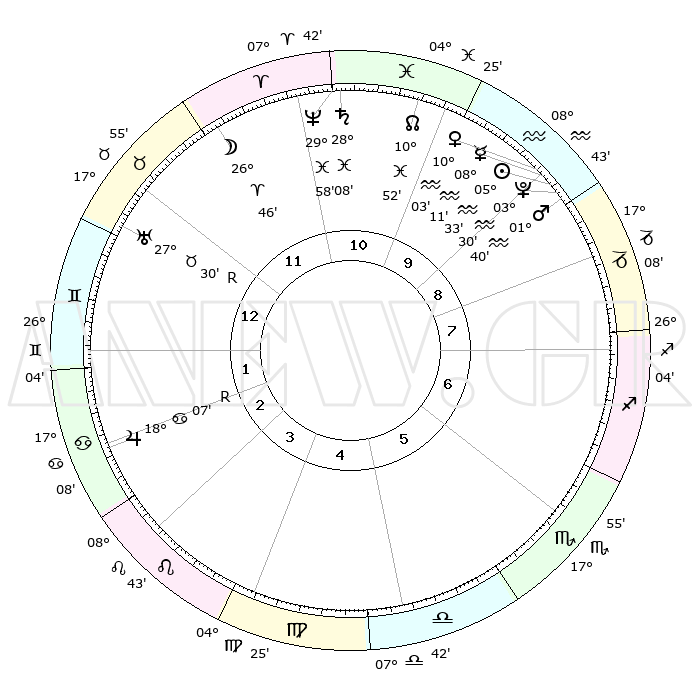 | | ΘΕΣΕΙΣ ΠΛΑΝΗΤΩΝ ΑΣΤΡΟΛΟΓΙΚΟΥ ΧΑΡΤΗ ΤΗΣ ΣΤΙΓΜΗΣ ΑΥΤΗΣ | | | | Πλανήτης | Ζώδιο | Μοίρες | Δεκαήμ. | Σε οίκο | Απόκλιση | | Ακμές των οίκων | | Ηλιος | Υδροχόος | 05°13' | Πρώτο | 1 | 18 S 58 | | 1ος | 18°41' | Αιγόκερως | | Σελήνη | Κριός | 22°15' | Τρίτο | 3 | 11 N 57 | | 2ος | 00°31' | Ιχθείς | | Ερμής | Υδροχόος | 07°38' | Πρώτο | 1 | 20 S 23 | | 3ος | 10°22' | Κριός | | Αφροδίτη | Υδροχόος | 09°39' | Πρώτο | 1 | 19 S 01 | | 4ος | 10°54' | Ταύρος | | Αρης | Υδροχόος | 01°25' | Πρώτο | 1 | 20 S 50 | | 5ος | 04°41' | Δίδυμοι | | Δίας | Καρκίνος | 18°09'R | Δεύτερο | 6 | 22 N 30 | | 6ος | 25°53' | Δίδυμοι | | Κρόνος | Ιχθείς | 28°07' | Τρίτο | 2 | 02 S 46 | | 7ος | 18°41' | Καρκίνος | | Ουρανός | Ταύρος | 27°30'R | Τρίτο | 4 | 19 N 25 | | 8ος | 00°31' | Παρθένος | | Ποσειδώνας | Ιχθείς | 29°58' | Τρίτο | 2 | 01 S 13 | | 9ος | 10°22' | Ζυγός | | Πλούτωνας | Υδροχόος | 03°29' | Πρώτο | 1 | 23 S 04 | | 10ος | 10°54' | Σκορπιός | | Β. Δεσμός | Ιχθείς | 10°53' | Δεύτερο | 2 | 07 S 29 | | 11ος | 04°41' | Τοξότης | | Ωροσκόπος | Αιγόκερως | 18°41' | Δεύτερο | | | 12ος | 25°53' | Τοξότης | | Μεσουράνημα | Σκορπιός | 10°54' | Δεύτερο | | | |