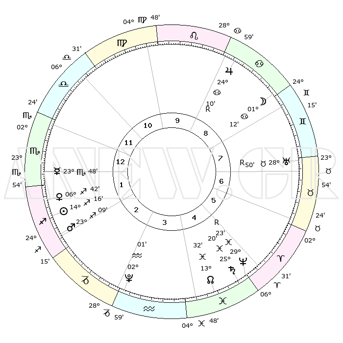 | | ΘΕΣΕΙΣ ΠΛΑΝΗΤΩΝ ΑΣΤΡΟΛΟΓΙΚΟΥ ΧΑΡΤΗ ΤΗΣ ΣΤΙΓΜΗΣ ΑΥΤΗΣ | | | | Πλανήτης | Ζώδιο | Μοίρες | Δεκαήμ. | Σε οίκο | Απόκλιση | | Ακμές των οίκων | | Ηλιος | Τοξότης | 14°14' | Δεύτερο | 2 | 22 S 30 | | 1ος | 13°26' | Σκορπιός | | Σελήνη | Καρκίνος | 00°39' | Πρώτο | 8 | 28 N 13 | | 2ος | 12°47' | Τοξότης | | Ερμής | Σκορπιός | 23°46' | Τρίτο | 1 | 16 S 19 | | 3ος | 16°04' | Αιγόκερως | | Αφροδίτη | Τοξότης | 06°39' | Πρώτο | 1 | 20 S 55 | | 4ος | 21°14' | Υδροχόος | | Αρης | Τοξότης | 23°07' | Τρίτο | 2 | 23 S 57 | | 5ος | 23°45' | Ιχθείς | | Δίας | Καρκίνος | 24°10'R | Τρίτο | 9 | 21 N 27 | | 6ος | 20°59' | Κριός | | Κρόνος | Ιχθείς | 25°20' | Τρίτο | 5 | 04 S 01 | | 7ος | 13°26' | Ταύρος | | Ουρανός | Ταύρος | 28°50'R | Τρίτο | 7 | 19 N 42 | | 8ος | 12°47' | Δίδυμοι | | Ποσειδώνας | Ιχθείς | 29°23'R | Τρίτο | 5 | 01 S 29 | | 9ος | 16°04' | Καρκίνος | | Πλούτωνας | Υδροχόος | 02°01' | Πρώτο | 3 | 23 S 22 | | 10ος | 21°14' | Λέων | | Β. Δεσμός | Ιχθείς | 13°32' | Δεύτερο | 4 | 06 S 28 | | 11ος | 23°45' | Παρθένος | | Ωροσκόπος | Σκορπιός | 13°26' | Δεύτερο | | | 12ος | 20°59' | Ζυγός | | Μεσουράνημα | Λέων | 21°14' | Τρίτο | | | |
