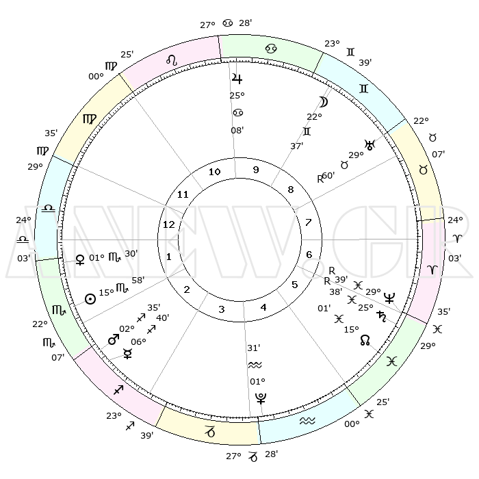 | | ΘΕΣΕΙΣ ΠΛΑΝΗΤΩΝ ΑΣΤΡΟΛΟΓΙΚΟΥ ΧΑΡΤΗ ΤΗΣ ΣΤΙΓΜΗΣ ΑΥΤΗΣ | | | | Πλανήτης | Ζώδιο | Μοίρες | Δεκαήμ. | Σε οίκο | Απόκλιση | | Ακμές των οίκων | | Ηλιος | Σκορπιός | 15°45' | Δεύτερο | 3 | 16 S 33 | | 1ος | 22°32' | Λέων | | Σελήνη | Δίδυμοι | 19°28' | Δεύτερο | 10 | 28 N 04 | | 2ος | 15°36' | Παρθένος | | Ερμής | Τοξότης | 06°37' | Πρώτο | 4 | 23 S 58 | | 3ος | 13°32' | Ζυγός | | Αφροδίτη | Σκορπιός | 01°14' | Πρώτο | 3 | 10 S 37 | | 4ος | 16°17' | Σκορπιός | | Αρης | Τοξότης | 02°26' | Πρώτο | 4 | 21 S 06 | | 5ος | 21°01' | Τοξότης | | Δίας | Καρκίνος | 25°08' | Τρίτο | 12 | 21 N 12 | | 6ος | 23°38' | Αιγόκερως | | Κρόνος | Ιχθείς | 25°39'R | Τρίτο | 8 | 03 S 59 | | 7ος | 22°32' | Υδροχόος | | Ουρανός | Δίδυμοι | 00°00'R | Πρώτο | 10 | 19 N 56 | | 8ος | 15°36' | Ιχθείς | | Ποσειδώνας | Ιχθείς | 29°40'R | Τρίτο | 8 | 01 S 23 | | 9ος | 13°32' | Κριός | | Πλούτωνας | Υδροχόος | 01°31' | Πρώτο | 6 | 23 S 30 | | 10ος | 16°17' | Ταύρος | | Β. Δεσμός | Ιχθείς | 15°02' | Δεύτερο | 7 | 05 S 54 | | 11ος | 21°01' | Δίδυμοι | | Ωροσκόπος | Λέων | 22°32' | Τρίτο | | | 12ος | 23°38' | Καρκίνος | | Μεσουράνημα | Ταύρος | 16°17' | Δεύτερο | | | |