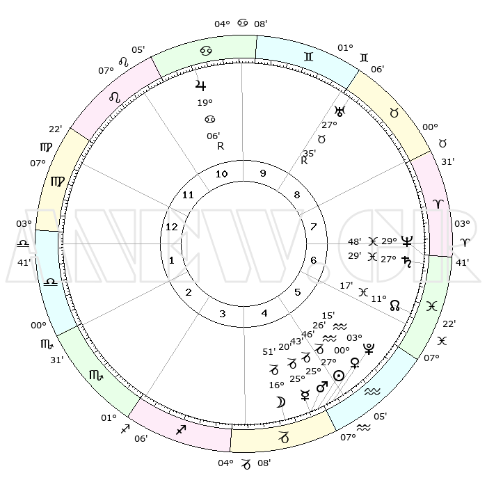 | | ΘΕΣΕΙΣ ΠΛΑΝΗΤΩΝ ΑΣΤΡΟΛΟΓΙΚΟΥ ΧΑΡΤΗ ΤΗΣ ΣΤΙΓΜΗΣ ΑΥΤΗΣ | | | | Πλανήτης | Ζώδιο | Μοίρες | Δεκαήμ. | Σε οίκο | Απόκλιση | | Ακμές των οίκων | | Ηλιος | Αιγόκερως | 27°41' | Τρίτο | 5 | 20 S 37 | | 1ος | 11°60' | Παρθένος | | Σελήνη | Αιγόκερως | 15°57' | Δεύτερο | 5 | 26 S 36 | | 2ος | 07°04' | Ζυγός | | Ερμής | Αιγόκερως | 25°13' | Τρίτο | 5 | 22 S 59 | | 3ος | 06°39' | Σκορπιός | | Αφροδίτη | Υδροχόος | 00°21' | Πρώτο | 5 | 21 S 06 | | 4ος | 09°36' | Τοξότης | | Αρης | Αιγόκερως | 25°40' | Τρίτο | 5 | 21 S 58 | | 5ος | 13°05' | Αιγόκερως | | Δίας | Καρκίνος | 19°06'R | Δεύτερο | 11 | 22 N 21 | | 6ος | 14°16' | Υδροχόος | | Κρόνος | Ιχθείς | 27°28' | Τρίτο | 7 | 03 S 02 | | 7ος | 11°60' | Ιχθείς | | Ουρανός | Ταύρος | 27°35'R | Τρίτο | 9 | 19 N 26 | | 8ος | 07°04' | Κριός | | Ποσειδώνας | Ιχθείς | 29°48' | Τρίτο | 7 | 01 S 18 | | 9ος | 06°39' | Ταύρος | | Πλούτωνας | Υδροχόος | 03°15' | Πρώτο | 5 | 23 S 07 | | 10ος | 09°36' | Δίδυμοι | | Β. Δεσμός | Ιχθείς | 11°17' | Δεύτερο | 6 | 07 S 20 | | 11ος | 13°05' | Καρκίνος | | Ωροσκόπος | Παρθένος | 11°60' | Δεύτερο | | | 12ος | 14°16' | Λέων | | Μεσουράνημα | Δίδυμοι | 09°36' | Πρώτο | | | |