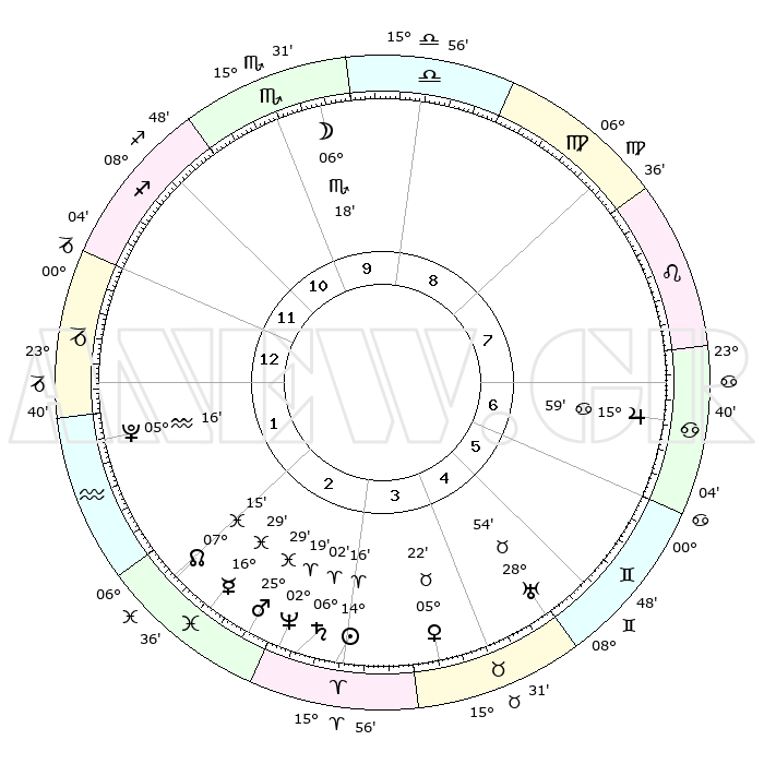 | | ΘΕΣΕΙΣ ΠΛΑΝΗΤΩΝ ΑΣΤΡΟΛΟΓΙΚΟΥ ΧΑΡΤΗ ΤΗΣ ΣΤΙΓΜΗΣ ΑΥΤΗΣ | | | | Πλανήτης | Ζώδιο | Μοίρες | Δεκαήμ. | Σε οίκο | Απόκλιση | | Ακμές των οίκων | | Ηλιος | Κριός | 14°12' | Δεύτερο | 3 | 05 N 36 | | 1ος | 01°10' | Αιγόκερως | | Σελήνη | Σκορπιός | 05°33' | Πρώτο | 10 | 17 S 27 | | 2ος | 08°36' | Υδροχόος | | Ερμής | Ιχθείς | 16°26' | Δεύτερο | 2 | 06 S 57 | | 3ος | 18°41' | Ιχθείς | | Αφροδίτη | Ταύρος | 05°17' | Πρώτο | 4 | 12 N 59 | | 4ος | 22°26' | Κριός | | Αρης | Ιχθείς | 25°26' | Τρίτο | 3 | 02 S 46 | | 5ος | 18°34' | Ταύρος | | Δίας | Καρκίνος | 15°59' | Δεύτερο | 7 | 22 N 51 | | 6ος | 10°18' | Δίδυμοι | | Κρόνος | Κριός | 06°02' | Πρώτο | 3 | 00 N 26 | | 7ος | 01°10' | Καρκίνος | | Ουρανός | Ταύρος | 28°54' | Τρίτο | 5 | 19 N 44 | | 8ος | 08°36' | Λέων | | Ποσειδώνας | Κριός | 02°19' | Πρώτο | 3 | 00 S 17 | | 9ος | 18°41' | Παρθένος | | Πλούτωνας | Υδροχόος | 05°16' | Πρώτο | 1 | 22 S 47 | | 10ος | 22°26' | Ζυγός | | Β. Δεσμός | Ιχθείς | 07°15' | Πρώτο | 2 | 08 S 51 | | 11ος | 18°34' | Σκορπιός | | Ωροσκόπος | Αιγόκερως | 01°10' | Πρώτο | | | 12ος | 10°18' | Τοξότης | | Μεσουράνημα | Ζυγός | 22°26' | Τρίτο | | | |
