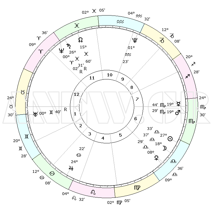 | ΘΕΣΕΙΣ ΠΛΑΝΗΤΩΝ ΑΣΤΡΟΛΟΓΙΚΟΥ ΧΑΡΤΗ ΤΗΣ ΣΤΙΓΜΗΣ ΑΥΤΗΣ | | Πλανήτης | Ζώδιο | Μοίρες | Δεκαήμ. | Σε οίκο | Απόκλιση | | Ακμές των οίκων | Ηλιος | Ζυγός | 27°26' | Τρίτο | 7 | 10 S 33 | | 1ος | 17°23' | Ιχθείς | Σελήνη | Ζυγός | 17°08' | Δεύτερο | 7 | 09 S 04 | | 2ος | 00°25' | Ταύρος | Ερμής | Σκορπιός | 19°35' | Δεύτερο | 8 | 19 S 49 | | 3ος | 29°53' | Ταύρος | Αφροδίτη | Ζυγός | 08°20' | Πρώτο | 7 | 01 S 53 | | 4ος | 22°53' | Δίδυμοι | Αρης | Σκορπιός | 19°24' | Δεύτερο | 8 | 17 S 51 | | 5ος | 14°45' | Καρκίνος | Δίας | Καρκίνος | 24°22' | Τρίτο | 5 | 21 N 18 | | 6ος | 10°21' | Λέων | Κρόνος | Ιχθείς | 26°32'R | Τρίτο | 1 | 03 S 40 | | 7ος | 17°23' | Παρθένος | Ουρανός | Δίδυμοι | 00°41'R | Πρώτο | 3 | 20 N 05 | | 8ος | 00°25' | Σκορπιός | Ποσειδώνας | Κριός | 00°02'R | Πρώτο | 1 | 01 S 15 | | 9ος | 29°53' | Σκορπιός | Πλούτωνας | Υδροχόος | 01°23' | Πρώτο | 11 | 23 S 32 | | 10ος | 22°53' | Τοξότης | Β. Δεσμός | Ιχθείς | 16°00' | Δεύτερο | 12 | 05 S 31 | | 11ος | 14°45' | Αιγόκερως | Ωροσκόπος | Ιχθείς | 17°23' | Δεύτερο | | | 12ος | 10°21' | Υδροχόος | Μεσουράνημα | Τοξότης | 22°53' | Τρίτο | | | |