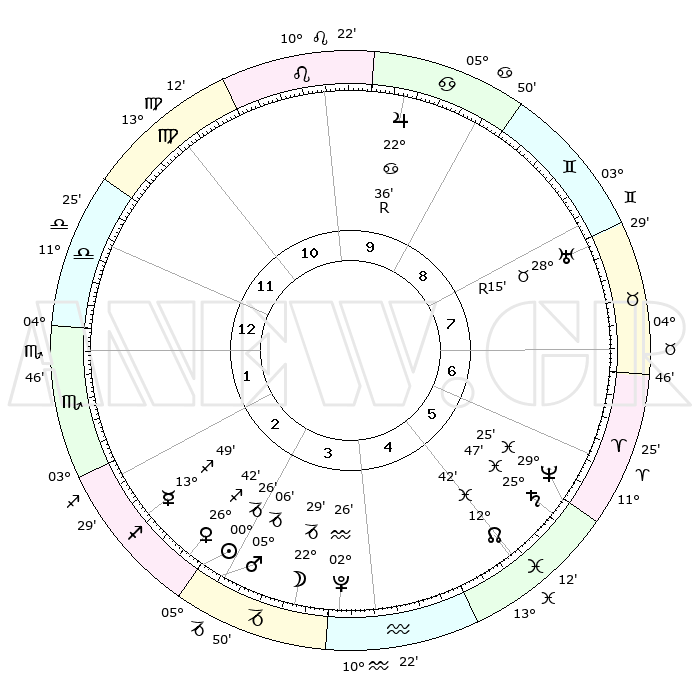 | | ΘΕΣΕΙΣ ΠΛΑΝΗΤΩΝ ΑΣΤΡΟΛΟΓΙΚΟΥ ΧΑΡΤΗ ΤΗΣ ΣΤΙΓΜΗΣ ΑΥΤΗΣ | | | | Πλανήτης | Ζώδιο | Μοίρες | Δεκαήμ. | Σε οίκο | Απόκλιση | | Ακμές των οίκων | | Ηλιος | Αιγόκερως | 00°22' | Πρώτο | 3 | 23 S 26 | | 1ος | 14°17' | Ζυγός | | Σελήνη | Αιγόκερως | 21°37' | Τρίτο | 4 | 25 S 30 | | 2ος | 11°47' | Σκορπιός | | Ερμής | Τοξότης | 13°43' | Δεύτερο | 3 | 21 S 48 | | 3ος | 12°48' | Τοξότης | | Αφροδίτη | Τοξότης | 26°36' | Τρίτο | 3 | 23 S 30 | | 4ος | 16°08' | Αιγόκερως | | Αρης | Αιγόκερως | 05°03' | Πρώτο | 3 | 24 S 10 | | 5ος | 19°04' | Υδροχόος | | Δίας | Καρκίνος | 22°36'R | Τρίτο | 10 | 21 N 45 | | 6ος | 18°52' | Ιχθείς | | Κρόνος | Ιχθείς | 25°47' | Τρίτο | 6 | 03 S 47 | | 7ος | 14°17' | Κριός | | Ουρανός | Ταύρος | 28°15'R | Τρίτο | 8 | 19 N 34 | | 8ος | 11°47' | Ταύρος | | Ποσειδώνας | Ιχθείς | 29°25' | Τρίτο | 6 | 01 S 28 | | 9ος | 12°48' | Δίδυμοι | | Πλούτωνας | Υδροχόος | 02°26' | Πρώτο | 4 | 23 S 17 | | 10ος | 16°08' | Καρκίνος | | Β. Δεσμός | Ιχθείς | 12°42' | Δεύτερο | 5 | 06 S 48 | | 11ος | 19°04' | Λέων | | Ωροσκόπος | Ζυγός | 14°17' | Δεύτερο | | | 12ος | 18°52' | Παρθένος | | Μεσουράνημα | Καρκίνος | 16°08' | Δεύτερο | | | |