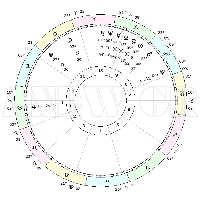 | | ΘΕΣΕΙΣ ΠΛΑΝΗΤΩΝ ΑΣΤΡΟΛΟΓΙΚΟΥ ΧΑΡΤΗ ΤΗΣ ΣΤΙΓΜΗΣ ΑΥΤΗΣ | | | | Πλανήτης | Ζώδιο | Μοίρες | Δεκαήμ. | Σε οίκο | Απόκλιση | | Ακμές των οίκων | | Ηλιος | Ιχθείς | 03°47' | Πρώτο | 10 | 10 S 07 | | 1ος | 14°59' | Δίδυμοι | | Σελήνη | Ταύρος | 06°06' | Πρώτο | 12 | 17 N 44 | | 2ος | 07°15' | Καρκίνος | | Ερμής | Ιχθείς | 21°21' | Τρίτο | 10 | 01 S 43 | | 3ος | 28°29' | Καρκίνος | | Αφροδίτη | Ιχθείς | 15°00' | Δεύτερο | 10 | 07 S 14 | | 4ος | 22°41' | Λέων | | Αρης | Υδροχόος | 23°34' | Τρίτο | 10 | 14 S 41 | | 5ος | 23°55' | Παρθένος | | Δίας | Καρκίνος | 15°32'R | Δεύτερο | 2 | 22 N 52 | | 6ος | 04°02' | Σκορπιός | | Κρόνος | Κριός | 01°04' | Πρώτο | 11 | 01 S 32 | | 7ος | 14°59' | Τοξότης | | Ουρανός | Ταύρος | 27°36' | Τρίτο | 12 | 19 N 27 | | 8ος | 07°15' | Αιγόκερως | | Ποσειδώνας | Κριός | 00°49' | Πρώτο | 11 | 00 S 53 | | 9ος | 28°29' | Αιγόκερως | | Πλούτωνας | Υδροχόος | 04°21' | Πρώτο | 9 | 22 S 54 | | 10ος | 22°41' | Υδροχόος | | Β. Δεσμός | Ιχθείς | 09°24' | Πρώτο | 10 | 08 S 03 | | 11ος | 23°55' | Ιχθείς | | Ωροσκόπος | Δίδυμοι | 14°59' | Δεύτερο | | | 12ος | 04°02' | Ταύρος | | Μεσουράνημα | Υδροχόος | 22°41' | Τρίτο | | | |