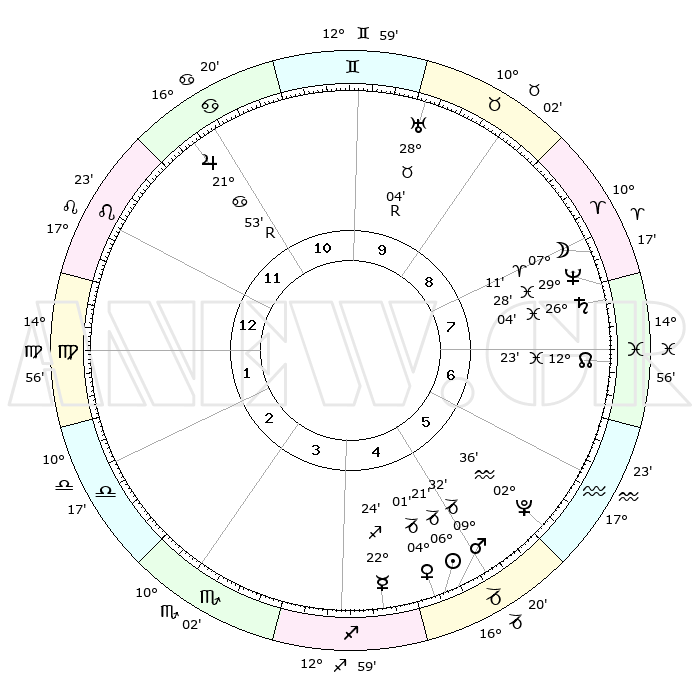 | | ΘΕΣΕΙΣ ΠΛΑΝΗΤΩΝ ΑΣΤΡΟΛΟΓΙΚΟΥ ΧΑΡΤΗ ΤΗΣ ΣΤΙΓΜΗΣ ΑΥΤΗΣ | | | | Πλανήτης | Ζώδιο | Μοίρες | Δεκαήμ. | Σε οίκο | Απόκλιση | | Ακμές των οίκων | | Ηλιος | Αιγόκερως | 06°17' | Πρώτο | 5 | 23 S 17 | | 1ος | 24°16' | Λέων | | Σελήνη | Κριός | 06°13' | Πρώτο | 8 | 04 N 26 | | 2ος | 17°31' | Παρθένος | | Ερμής | Τοξότης | 22°18' | Τρίτο | 4 | 23 S 18 | | 3ος | 15°37' | Ζυγός | | Αφροδίτη | Αιγόκερως | 03°56' | Πρώτο | 5 | 23 S 43 | | 4ος | 18°26' | Σκορπιός | | Αρης | Αιγόκερως | 09°29' | Πρώτο | 5 | 23 S 57 | | 5ος | 23°02' | Τοξότης | | Δίας | Καρκίνος | 21°54'R | Τρίτο | 11 | 21 N 53 | | 6ος | 25°29' | Αιγόκερως | | Κρόνος | Ιχθείς | 26°03' | Τρίτο | 8 | 03 S 39 | | 7ος | 24°16' | Υδροχόος | | Ουρανός | Ταύρος | 28°04'R | Τρίτο | 10 | 19 N 32 | | 8ος | 17°31' | Ιχθείς | | Ποσειδώνας | Ιχθείς | 29°28' | Τρίτο | 8 | 01 S 26 | | 9ος | 15°37' | Κριός | | Πλούτωνας | Υδροχόος | 02°36' | Πρώτο | 6 | 23 S 15 | | 10ος | 18°26' | Ταύρος | | Β. Δεσμός | Ιχθείς | 12°24' | Δεύτερο | 7 | 06 S 55 | | 11ος | 23°02' | Δίδυμοι | | Ωροσκόπος | Λέων | 24°16' | Τρίτο | | | 12ος | 25°29' | Καρκίνος | | Μεσουράνημα | Ταύρος | 18°26' | Δεύτερο | | | |