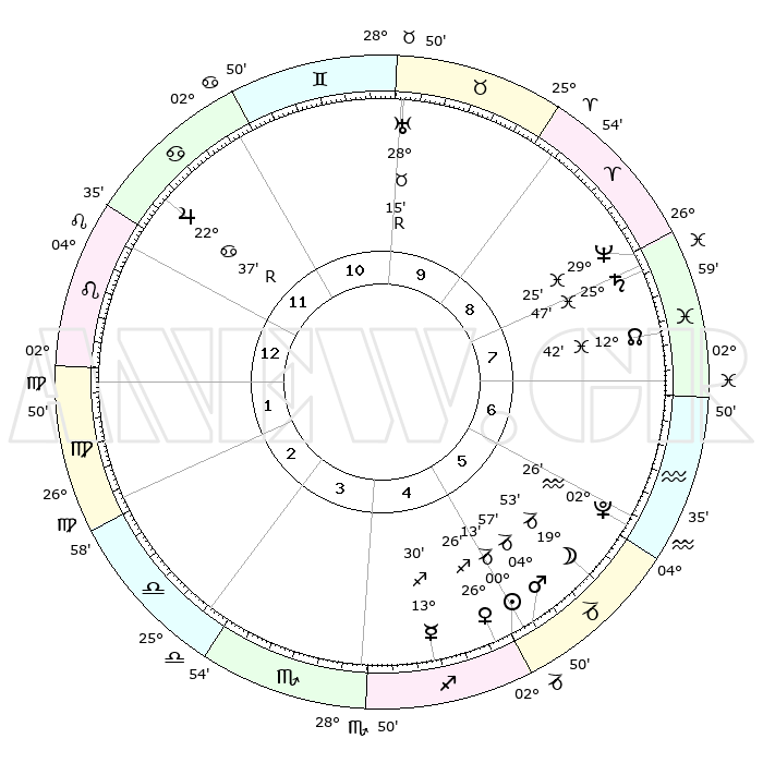 | | ΘΕΣΕΙΣ ΠΛΑΝΗΤΩΝ ΑΣΤΡΟΛΟΓΙΚΟΥ ΧΑΡΤΗ ΤΗΣ ΣΤΙΓΜΗΣ ΑΥΤΗΣ | | | | Πλανήτης | Ζώδιο | Μοίρες | Δεκαήμ. | Σε οίκο | Απόκλιση | | Ακμές των οίκων | | Ηλιος | Αιγόκερως | 00°09' | Πρώτο | 5 | 23 S 26 | | 1ος | 12°05' | Λέων | | Σελήνη | Αιγόκερως | 19°01' | Δεύτερο | 6 | 26 S 02 | | 2ος | 04°06' | Παρθένος | | Ερμής | Τοξότης | 13°24' | Δεύτερο | 5 | 21 S 44 | | 3ος | 00°46' | Ζυγός | | Αφροδίτη | Τοξότης | 26°20' | Τρίτο | 5 | 23 S 29 | | 4ος | 02°60' | Σκορπιός | | Αρης | Αιγόκερως | 04°54' | Πρώτο | 5 | 24 S 10 | | 5ος | 08°28' | Τοξότης | | Δίας | Καρκίνος | 22°38'R | Τρίτο | 12 | 21 N 45 | | 6ος | 12°20' | Αιγόκερως | | Κρόνος | Ιχθείς | 25°46' | Τρίτο | 8 | 03 S 47 | | 7ος | 12°05' | Υδροχόος | | Ουρανός | Ταύρος | 28°15'R | Τρίτο | 10 | 19 N 34 | | 8ος | 04°06' | Ιχθείς | | Ποσειδώνας | Ιχθείς | 29°25' | Τρίτο | 8 | 01 S 28 | | 9ος | 00°46' | Κριός | | Πλούτωνας | Υδροχόος | 02°26' | Πρώτο | 6 | 23 S 17 | | 10ος | 02°60' | Ταύρος | | Β. Δεσμός | Ιχθείς | 12°43' | Δεύτερο | 8 | 06 S 47 | | 11ος | 08°28' | Δίδυμοι | | Ωροσκόπος | Λέων | 12°05' | Δεύτερο | | | 12ος | 12°20' | Καρκίνος | | Μεσουράνημα | Ταύρος | 02°60' | Πρώτο | | | |