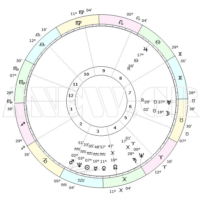 | | ΘΕΣΕΙΣ ΠΛΑΝΗΤΩΝ ΑΣΤΡΟΛΟΓΙΚΟΥ ΧΑΡΤΗ ΤΗΣ ΣΤΙΓΜΗΣ ΑΥΤΗΣ | | | | Πλανήτης | Ζώδιο | Μοίρες | Δεκαήμ. | Σε οίκο | Απόκλιση | | Ακμές των οίκων | | Ηλιος | Υδροχόος | 07°01' | Πρώτο | 3 | 18 S 31 | | 1ος | 08°30' | Σκορπιός | | Σελήνη | Ταύρος | 17°02' | Δεύτερο | 7 | 21 N 32 | | 2ος | 07°28' | Τοξότης | | Ερμής | Υδροχόος | 10°41' | Δεύτερο | 3 | 19 S 33 | | 3ος | 10°12' | Αιγόκερως | | Αφροδίτη | Υδροχόος | 11°52' | Δεύτερο | 3 | 18 S 27 | | 4ος | 15°00' | Υδροχόος | | Αρης | Υδροχόος | 02°48' | Πρώτο | 3 | 20 S 31 | | 5ος | 17°44' | Ιχθείς | | Δίας | Καρκίνος | 17°56'R | Δεύτερο | 9 | 22 N 31 | | 6ος | 15°32' | Κριός | | Κρόνος | Ιχθείς | 28°16' | Τρίτο | 5 | 02 S 42 | | 7ος | 08°30' | Ταύρος | | Ουρανός | Ταύρος | 27°29'R | Τρίτο | 7 | 19 N 24 | | 8ος | 07°28' | Δίδυμοι | | Ποσειδώνας | Κριός | 00°01' | Πρώτο | 5 | 01 S 12 | | 9ος | 10°12' | Καρκίνος | | Πλούτωνας | Υδροχόος | 03°32' | Πρώτο | 3 | 23 S 03 | | 10ος | 15°00' | Λέων | | Β. Δεσμός | Ιχθείς | 10°48' | Δεύτερο | 4 | 07 S 31 | | 11ος | 17°44' | Παρθένος | | Ωροσκόπος | Σκορπιός | 08°30' | Πρώτο | | | 12ος | 15°32' | Ζυγός | | Μεσουράνημα | Λέων | 15°00' | Δεύτερο | | | |