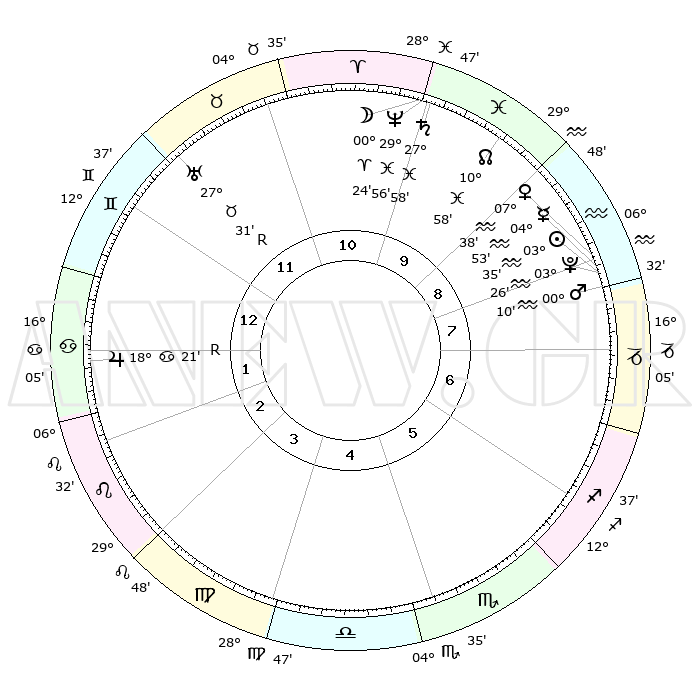 | | ΘΕΣΕΙΣ ΠΛΑΝΗΤΩΝ ΑΣΤΡΟΛΟΓΙΚΟΥ ΧΑΡΤΗ ΤΗΣ ΣΤΙΓΜΗΣ ΑΥΤΗΣ | | | | Πλανήτης | Ζώδιο | Μοίρες | Δεκαήμ. | Σε οίκο | Απόκλιση | | Ακμές των οίκων | | Ηλιος | Υδροχόος | 03°30' | Πρώτο | 8 | 19 S 22 | | 1ος | 21°47' | Δίδυμοι | | Σελήνη | Ιχθείς | 29°24' | Τρίτο | 10 | 01 N 24 | | 2ος | 13°14' | Καρκίνος | | Ερμής | Υδροχόος | 04°46' | Πρώτο | 9 | 21 S 05 | | 3ος | 04°38' | Λέων | | Αφροδίτη | Υδροχόος | 07°32' | Πρώτο | 9 | 19 S 33 | | 4ος | 29°43' | Λέων | | Αρης | Υδροχόος | 00°07' | Πρώτο | 8 | 21 S 06 | | 5ος | 02°13' | Ζυγός | | Δίας | Καρκίνος | 18°22'R | Δεύτερο | 2 | 22 N 28 | | 6ος | 12°32' | Σκορπιός | | Κρόνος | Ιχθείς | 27°58' | Τρίτο | 10 | 02 S 49 | | 7ος | 21°47' | Τοξότης | | Ουρανός | Ταύρος | 27°31'R | Τρίτο | 12 | 19 N 25 | | 8ος | 13°14' | Αιγόκερως | | Ποσειδώνας | Ιχθείς | 29°55' | Τρίτο | 10 | 01 S 14 | | 9ος | 04°38' | Υδροχόος | | Πλούτωνας | Υδροχόος | 03°26' | Πρώτο | 8 | 23 S 04 | | 10ος | 29°43' | Υδροχόος | | Β. Δεσμός | Ιχθείς | 10°59' | Δεύτερο | 10 | 07 S 27 | | 11ος | 02°13' | Κριός | | Ωροσκόπος | Δίδυμοι | 21°47' | Τρίτο | | | 12ος | 12°32' | Ταύρος | | Μεσουράνημα | Υδροχόος | 29°43' | Τρίτο | | | |