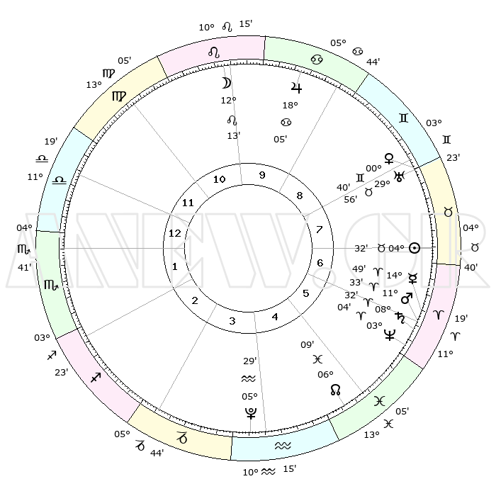 | | ΘΕΣΕΙΣ ΠΛΑΝΗΤΩΝ ΑΣΤΡΟΛΟΓΙΚΟΥ ΧΑΡΤΗ ΤΗΣ ΣΤΙΓΜΗΣ ΑΥΤΗΣ | | | | Πλανήτης | Ζώδιο | Μοίρες | Δεκαήμ. | Σε οίκο | Απόκλιση | | Ακμές των οίκων | | Ηλιος | Ταύρος | 04°29' | Πρώτο | 7 | 13 N 01 | | 1ος | 19°05' | Ζυγός | | Σελήνη | Λέων | 11°29' | Δεύτερο | 10 | 19 N 28 | | 2ος | 16°52' | Σκορπιός | | Ερμής | Κριός | 14°44' | Δεύτερο | 6 | 03 N 32 | | 3ος | 18°07' | Τοξότης | | Αφροδίτη | Δίδυμοι | 00°36' | Πρώτο | 8 | 20 N 52 | | 4ος | 21°39' | Αιγόκερως | | Αρης | Κριός | 11°31' | Δεύτερο | 6 | 03 N 42 | | 5ος | 24°36' | Υδροχόος | | Δίας | Καρκίνος | 18°05' | Δεύτερο | 9 | 22 N 36 | | 6ος | 24°07' | Ιχθείς | | Κρόνος | Κριός | 08°32' | Πρώτο | 6 | 01 N 24 | | 7ος | 19°05' | Κριός | | Ουρανός | Ταύρος | 29°56' | Τρίτο | 8 | 19 N 58 | | 8ος | 16°52' | Ταύρος | | Ποσειδώνας | Κριός | 03°03' | Πρώτο | 6 | 00 N 00 | | 9ος | 18°07' | Δίδυμοι | | Πλούτωνας | Υδροχόος | 05°29' | Πρώτο | 4 | 22 S 48 | | 10ος | 21°39' | Καρκίνος | | Β. Δεσμός | Ιχθείς | 06°09' | Πρώτο | 5 | 09 S 15 | | 11ος | 24°36' | Λέων | | Ωροσκόπος | Ζυγός | 19°05' | Δεύτερο | | | 12ος | 24°07' | Παρθένος | | Μεσουράνημα | Καρκίνος | 21°39' | Τρίτο | | | |