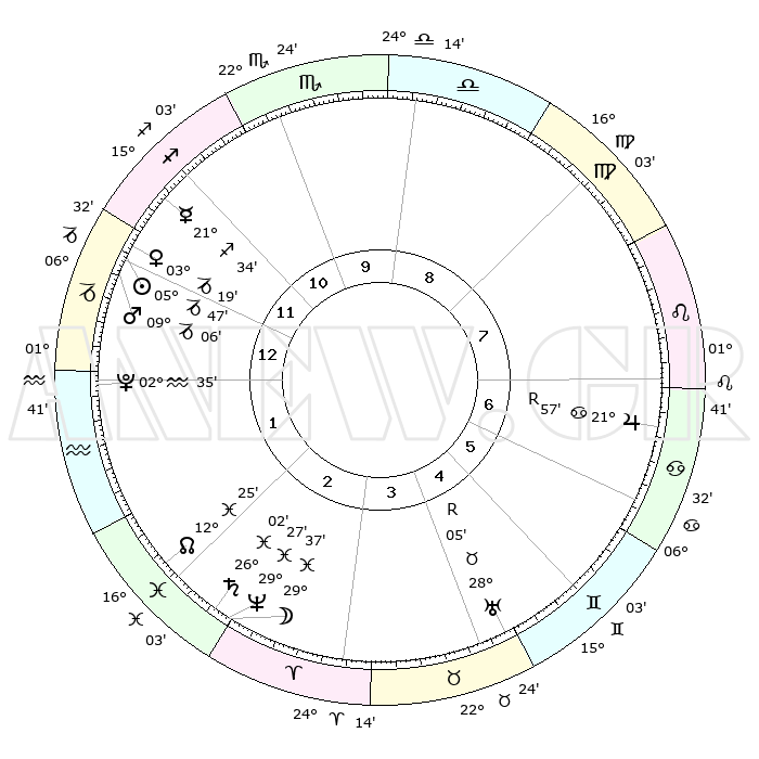 | | ΘΕΣΕΙΣ ΠΛΑΝΗΤΩΝ ΑΣΤΡΟΛΟΓΙΚΟΥ ΧΑΡΤΗ ΤΗΣ ΣΤΙΓΜΗΣ ΑΥΤΗΣ | | | | Πλανήτης | Ζώδιο | Μοίρες | Δεκαήμ. | Σε οίκο | Απόκλιση | | Ακμές των οίκων | | Ηλιος | Αιγόκερως | 05°43' | Πρώτο | 12 | 23 S 19 | | 1ος | 06°46' | Αιγόκερως | | Σελήνη | Ιχθείς | 28°44' | Τρίτο | 3 | 00 N 54 | | 2ος | 15°38' | Υδροχόος | | Ερμής | Τοξότης | 21°28' | Τρίτο | 12 | 23 S 11 | | 3ος | 25°56' | Ιχθείς | | Αφροδίτη | Αιγόκερως | 03°14' | Πρώτο | 12 | 23 S 43 | | 4ος | 28°43' | Κριός | | Αρης | Αιγόκερως | 09°04' | Πρώτο | 1 | 23 S 59 | | 5ος | 24°00' | Ταύρος | | Δίας | Καρκίνος | 21°58'R | Τρίτο | 7 | 21 N 52 | | 6ος | 15°27' | Δίδυμοι | | Κρόνος | Ιχθείς | 26°02' | Τρίτο | 3 | 03 S 40 | | 7ος | 06°46' | Καρκίνος | | Ουρανός | Ταύρος | 28°05'R | Τρίτο | 5 | 19 N 32 | | 8ος | 15°38' | Λέων | | Ποσειδώνας | Ιχθείς | 29°27' | Τρίτο | 3 | 01 S 27 | | 9ος | 25°56' | Παρθένος | | Πλούτωνας | Υδροχόος | 02°35' | Πρώτο | 1 | 23 S 15 | | 10ος | 28°43' | Ζυγός | | Β. Δεσμός | Ιχθείς | 12°25' | Δεύτερο | 2 | 06 S 54 | | 11ος | 24°00' | Σκορπιός | | Ωροσκόπος | Αιγόκερως | 06°46' | Πρώτο | | | 12ος | 15°27' | Τοξότης | | Μεσουράνημα | Ζυγός | 28°43' | Τρίτο | | | |