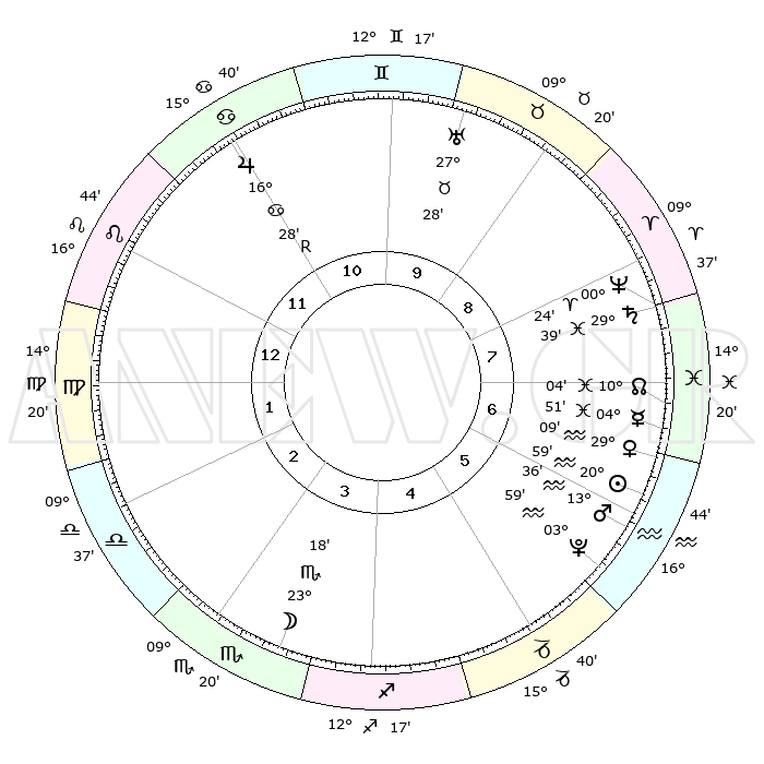| | ΘΕΣΕΙΣ ΠΛΑΝΗΤΩΝ ΑΣΤΡΟΛΟΓΙΚΟΥ ΧΑΡΤΗ ΤΗΣ ΣΤΙΓΜΗΣ ΑΥΤΗΣ | | | | Πλανήτης | Ζώδιο | Μοίρες | Δεκαήμ. | Σε οίκο | Απόκλιση | | Ακμές των οίκων | | Ηλιος | Υδροχόος | 20°56' | Τρίτο | 6 | 14 S 31 | | 1ος | 27°54' | Λέων | | Σελήνη | Σκορπιός | 22°38' | Τρίτο | 3 | 23 S 18 | | 2ος | 21°32' | Παρθένος | | Ερμής | Ιχθείς | 04°45' | Πρώτο | 7 | 10 S 39 | | 3ος | 20°00' | Ζυγός | | Αφροδίτη | Υδροχόος | 29°05' | Τρίτο | 7 | 13 S 09 | | 4ος | 22°53' | Σκορπιός | | Αρης | Υδροχόος | 13°33' | Δεύτερο | 6 | 17 S 46 | | 5ος | 27°13' | Τοξότης | | Δίας | Καρκίνος | 16°28'R | Δεύτερο | 11 | 22 N 44 | | 6ος | 29°21' | Αιγόκερως | | Κρόνος | Ιχθείς | 29°39' | Τρίτο | 8 | 02 S 07 | | 7ος | 27°54' | Υδροχόος | | Ουρανός | Ταύρος | 27°28' | Τρίτο | 10 | 19 N 25 | | 8ος | 21°31' | Ιχθείς | | Ποσειδώνας | Κριός | 00°24' | Πρώτο | 8 | 01 S 03 | | 9ος | 20°00' | Κριός | | Πλούτωνας | Υδροχόος | 03°58' | Πρώτο | 6 | 22 S 58 | | 10ος | 22°53' | Ταύρος | | Β. Δεσμός | Ιχθείς | 10°04' | Δεύτερο | 7 | 07 S 48 | | 11ος | 27°13' | Δίδυμοι | | Ωροσκόπος | Λέων | 27°54' | Τρίτο | | | 12ος | 29°21' | Καρκίνος | | Μεσουράνημα | Ταύρος | 22°53' | Τρίτο | | | |