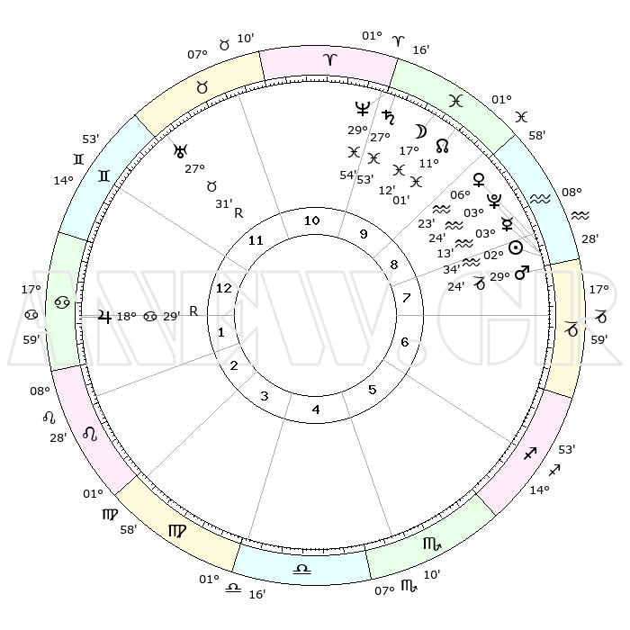 | | ΘΕΣΕΙΣ ΠΛΑΝΗΤΩΝ ΑΣΤΡΟΛΟΓΙΚΟΥ ΧΑΡΤΗ ΤΗΣ ΣΤΙΓΜΗΣ ΑΥΤΗΣ | | | | Πλανήτης | Ζώδιο | Μοίρες | Δεκαήμ. | Σε οίκο | Απόκλιση | | Ακμές των οίκων | | Ηλιος | Υδροχόος | 02°29' | Πρώτο | 8 | 19 S 36 | | 1ος | 20°05' | Δίδυμοι | | Σελήνη | Ιχθείς | 16°04' | Δεύτερο | 10 | 04 S 56 | | 2ος | 11°43' | Καρκίνος | | Ερμής | Υδροχόος | 03°04' | Πρώτο | 9 | 21 S 29 | | 3ος | 03°03' | Λέων | | Αφροδίτη | Υδροχόος | 06°16' | Πρώτο | 9 | 19 S 50 | | 4ος | 27°54' | Λέων | | Αρης | Αιγόκερως | 29°20' | Τρίτο | 8 | 21 S 16 | | 5ος | 00°06' | Ζυγός | | Δίας | Καρκίνος | 18°30'R | Δεύτερο | 2 | 22 N 26 | | 6ος | 10°23' | Σκορπιός | | Κρόνος | Ιχθείς | 27°52' | Τρίτο | 10 | 02 S 52 | | 7ος | 20°05' | Τοξότης | | Ουρανός | Ταύρος | 27°31'R | Τρίτο | 12 | 19 N 25 | | 8ος | 11°43' | Αιγόκερως | | Ποσειδώνας | Ιχθείς | 29°54' | Τρίτο | 10 | 01 S 15 | | 9ος | 03°03' | Υδροχόος | | Πλούτωνας | Υδροχόος | 03°24' | Πρώτο | 9 | 23 S 05 | | 10ος | 27°54' | Υδροχόος | | Β. Δεσμός | Ιχθείς | 11°02' | Δεύτερο | 10 | 07 S 26 | | 11ος | 00°06' | Κριός | | Ωροσκόπος | Δίδυμοι | 20°05' | Τρίτο | | | 12ος | 10°23' | Ταύρος | | Μεσουράνημα | Υδροχόος | 27°54' | Τρίτο | | | |
